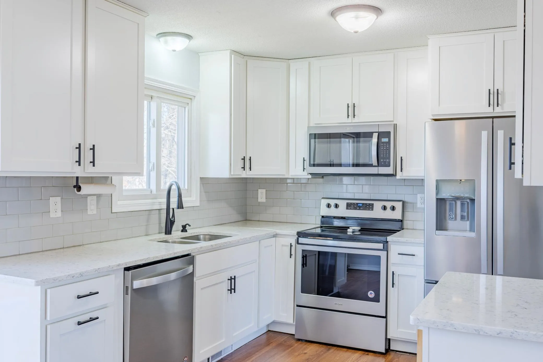 Welcome to this inviting 3-bedroom, 2-bath home combining modern updates with timeless charm. The exterior shines with new landscaping, fenced backyard, and a storage shed. Fresh paint flows throughout & the lower level features a renovated primary bathroom, new carpet, trim, and potential for a wet bar or kitchenette. Peace of mind comes with a newer roof, refreshed kitchen featuring stainless steel appliances, quartz countertops & newer mechanicals including furnace, washer, and dryer. Ideally located near parks, restaurants, shopping & freeway access–all for a great price! You don’t want to miss this one!