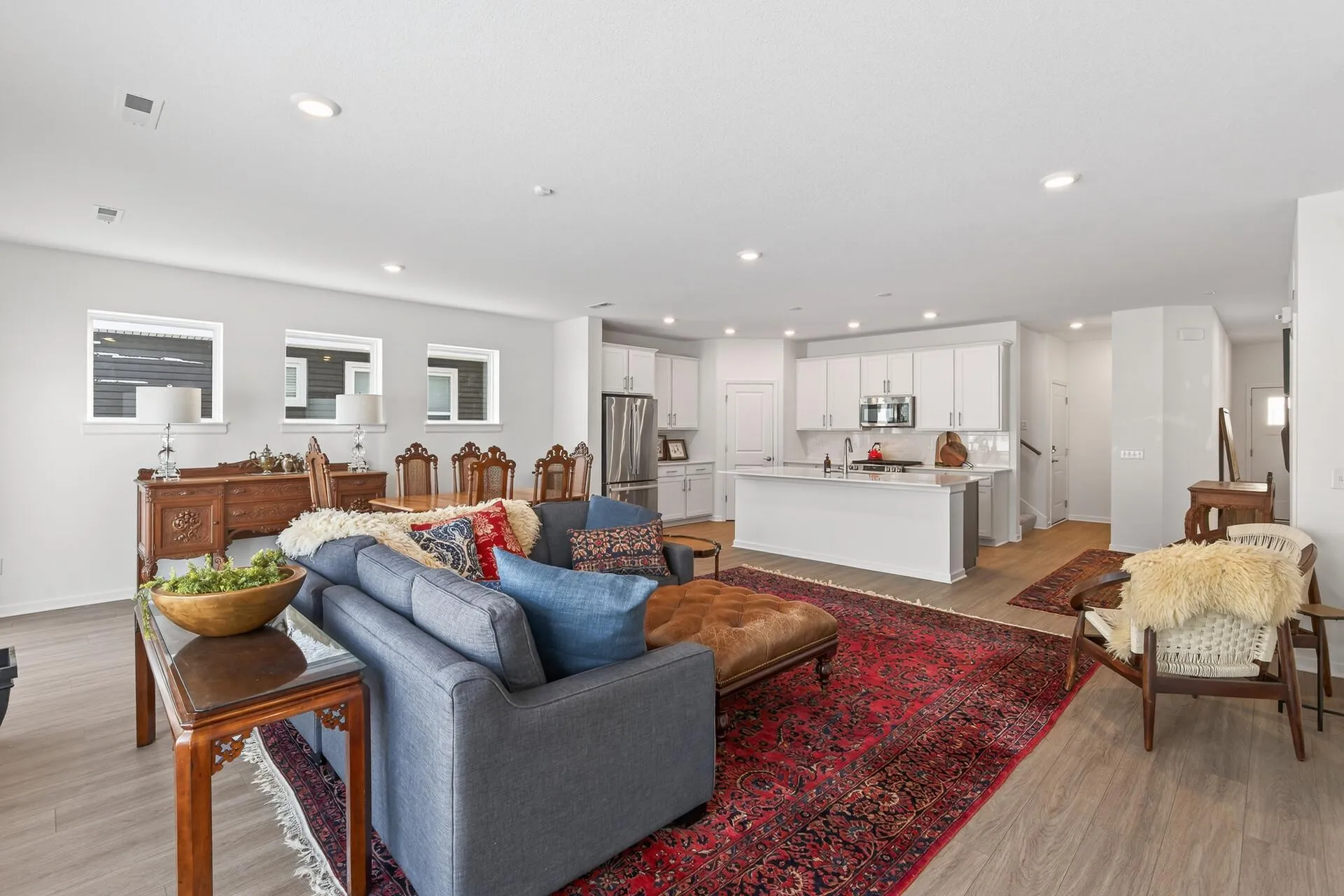 Located in the Villas at Rush Hollow neighborhood of Maple Grove, this association-maintained single family home offers the look and feel of new construction with the added value of upgrades already completed. Built in 2024 by David Weekley Homes and only lived in for one year, this home will appeal to buyers considering brand new builds in the neighborhood, while offering a move-in-ready option without the extra cost or wait. The 1.5 story layout offers true main-level living with a welcoming front porch and a back patio perfect for grilling. Inside, the home is light filled with 9-foot ceilings and an open floor plan offering over 2,400 finished square feet. The living room features a modern electric fireplace that adds warmth and style. A main floor flex room works well as a den, home office, or formal dining space. The kitchen is beautiful with classic white cabinets, tile backsplash, stainless steel appliances, quartz countertops, a center island, and a pantry. The spacious main level primary bedroom includes a walk-in closet and a private ensuite bath with a tall double-bowl vanity and a large shower. A main floor laundry room adds even more ease and convenience. Upstairs, the spacious loft with a 3/4 bathroom is ideal for guests, a movie room, game room, or additional living space. This home is truly better than new construction, with added features such as a brand new LG washer, dryer, refrigerator, window treatments, and a water softener by Finkens already installed. A security system through Wright Hennepin Electric includes fire, flood, gas, and freeze sensors—an added bonus that can help lower home insurance rates. The location is hard to beat—close to Elm Creek Park and less than a mile from Maple Grove Hospital, schools, restaurants, and shopping. Association dues cover lawn care, snow removal, sanitation, shared amenities, and professional management, making day-to-day living simple and low maintenance. Shared amenities include a large gathering green space with a fire pit and a fenced-in dog park. This home is only available due to relocation and provides the rare opportunity to enjoy new construction quality with immediate comfort and value.