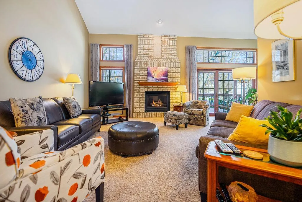 Experience refined comfort in this exceptional 3-4 bedroom, 3 bath ranch, set on a picturesque corner lot w/mature trees, lush established landscaping, irrigation & over 1/2 acre. Inside, vaulted ceilings & a striking brick fireplace create an inviting atmosphere that flows seamlessly through the dining/living areas & kitchen, perfect for elevated entertaining – all accentuated by abundant natural light. The primary suite offers a spa-inspired bath w/a tiled walk-in shower, soaking tub & heated floors. Patio doors from the primary suite & living area open onto an expansive deck, creating an ideal space for relaxation & outdoor entertaining. A finished lower level provides addtn’l rm for recreation & guests along w/generous storage. The 3-car gar. adds convenience to this remarkable home!