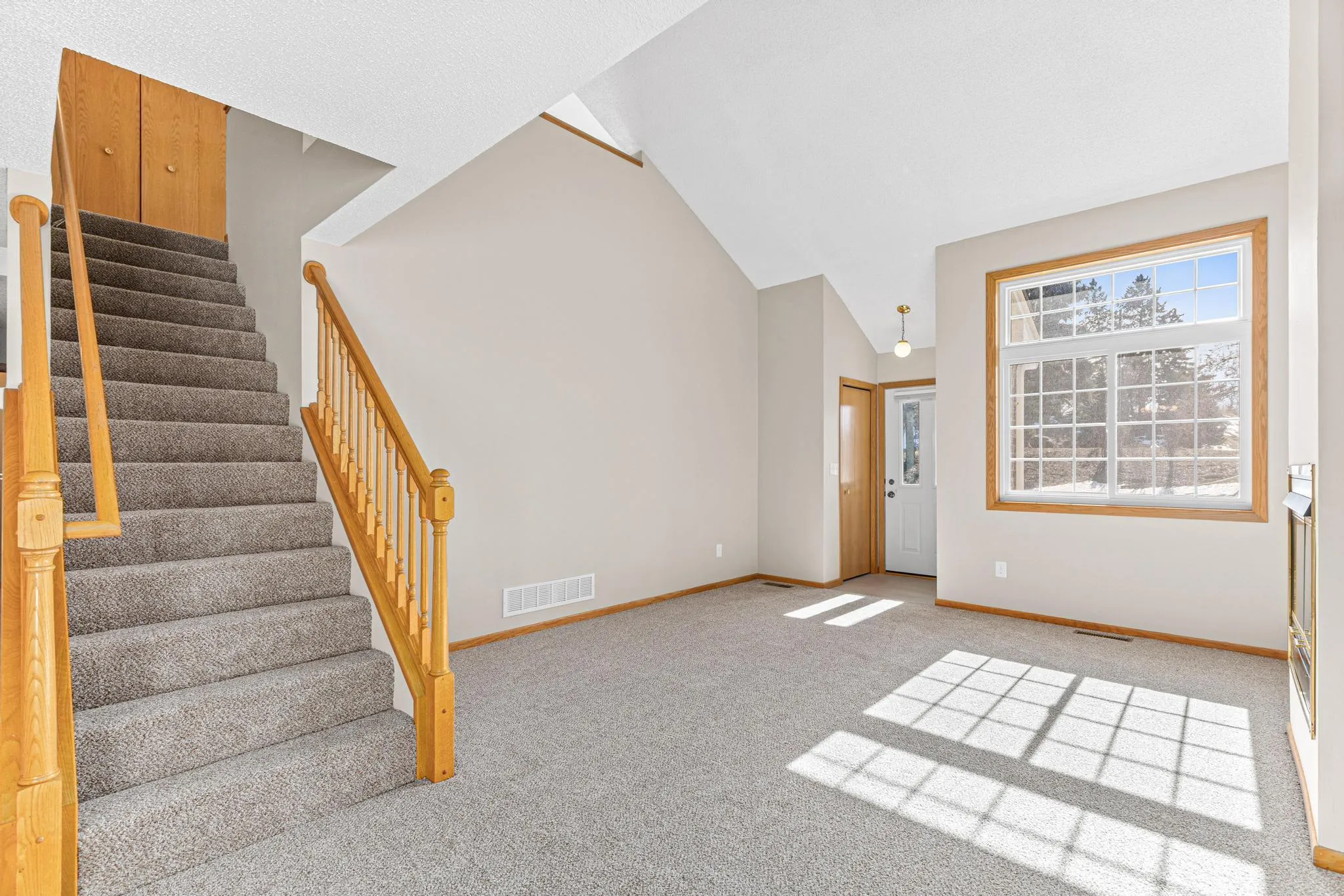 Welcome! This end-unit townhome in Inver Grove Heights is filled with natural light and functional space throughout. The two-story vaulted living room features a gas fireplace wiht a bright, open and spacious feel. The dining area walks out to a private patio. Kitchen offers ample storage and prep space. Main-level half bath and direct access to the attached two-car garage add everyday convenience. Upstairs you’ll find two generous bedrooms, a full bath with separate tub & shower, wonderful loft space, and upper-level laundry. Fresh paint and new flooring throughout make this home move-in ready! Water is included in HOA fee. Rentals are allowed. Pets allowed – one dog (plus one cat) or two cats.