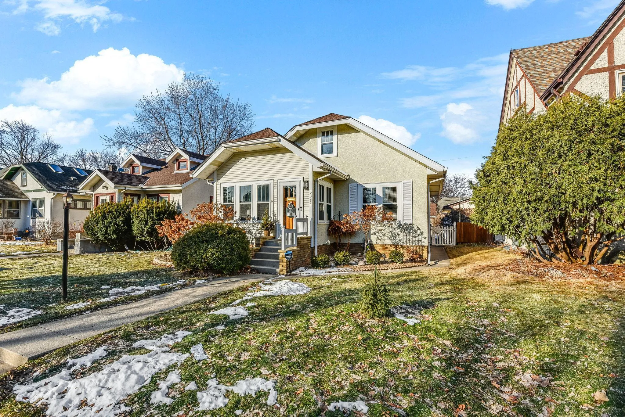 Charming and thoughtfully updated 1926 Northeast Minneapolis home located just off beautiful, tree-lined St. Anthony Parkway. This 2-bedroom, 1-bathroom home features original woodwork, hardwood floors, and abundant natural light throughout the main living spaces. The inviting living room includes custom built-ins and a gas fireplace; the dining room flows into the updated kitchen with newer appliances and abundant cabinetry. Two bedrooms and a remodeled bathroom complete the main level. The unfinished upper level offers excellent potential for future expansion. The lower level features a cozy lounge area with built-in shelving, music studio space, custom bar, laundry, and storage. Enjoy the private backyard deck, fenced yard, and detached two-car garage with alley access. Located near St. Anthony Parkway with easy access to parks, walking and biking trails, the Mississippi River, and Northeast Minneapolis shops, restaurants, and breweries.