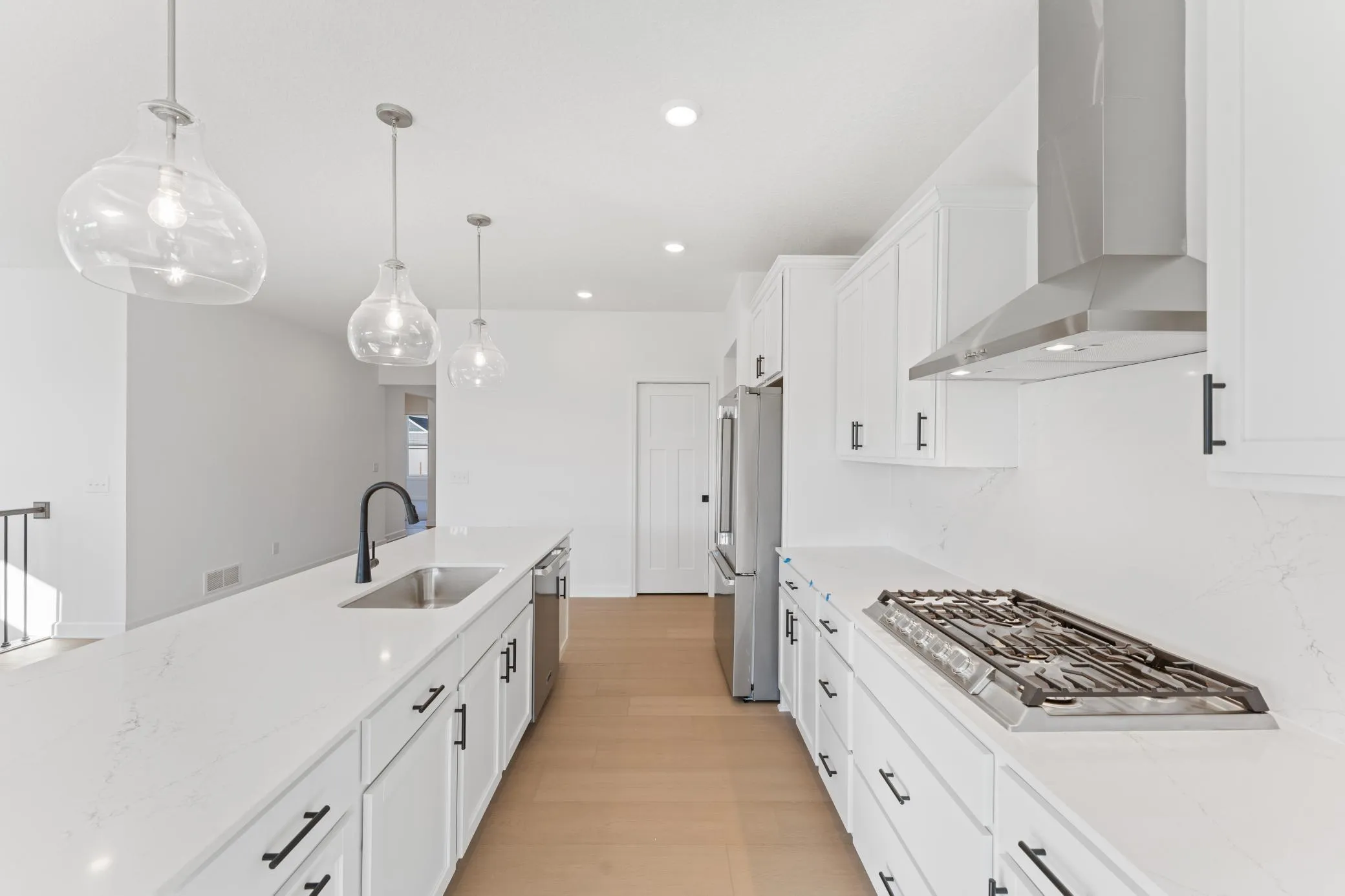 To-be-built Clearwater home in the desirable Timber Creek community! Enjoy the ease of one-level living in this thoughtfully designed floor plan featuring an open-concept layout ideal for both everyday living and entertaining. A stunning stone-surround fireplace highlights the spacious Great Room and flows seamlessly into the chef-inspired kitchen and bright dining area. The kitchen boasts a large center island, stainless steel hood, upgraded quartz countertops and backsplash, abundant cabinetry, and a walk-in pantry. Walls of windows fill the home with natural light while offering peaceful views of the surrounding landscape. The main-level primary suite provides a private retreat with a spa-inspired bathroom and a generous walk-in closet. Two additional bedrooms, a full bathroom, and a convenient laundry room complete the main level. The finished walkout lower level expands your living space with a large recreation room, fourth bedroom, and third bathroom—perfect for guests or entertaining. Additional features include two-zone HVAC, irrigation, and sod. Located in Timber Creek, residents enjoy quiet surroundings, scenic walking trails, and easy access to parks, shopping, and dining in Carver. Additional floor plans and homesites are available.
