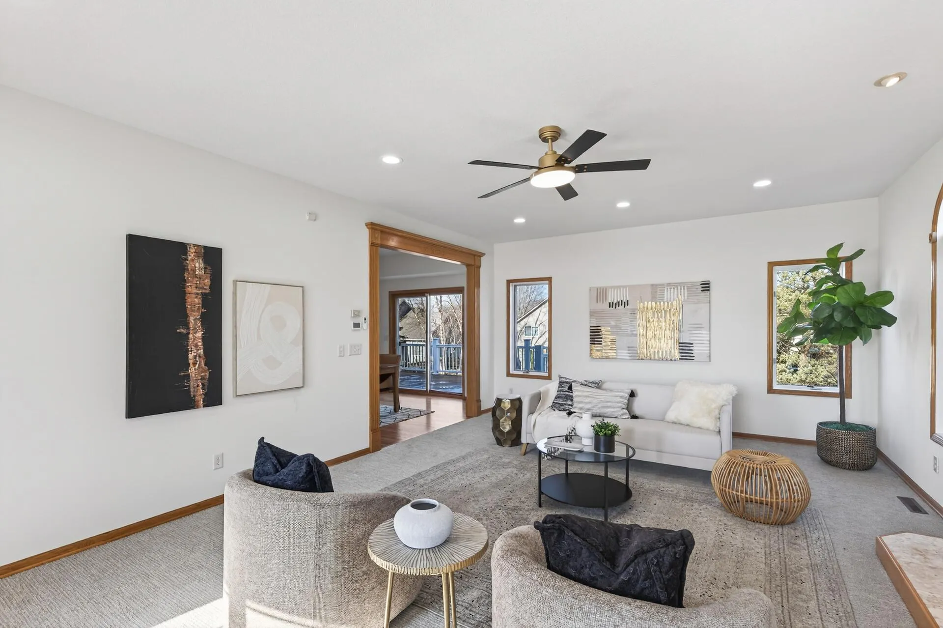 Welcome to this spacious 4-bedroom, 3-bath home on a quiet Oakdale street featuring a functional layout and room to grow. Freshly updated with new paint and carpet throughout, this home offers bright main-level living and dining spaces anchored by a cozy gas fireplace. The kitchen features new quartz countertops, and a patio leads to a deck overlooking the large backyard — perfect for relaxing or entertaining.