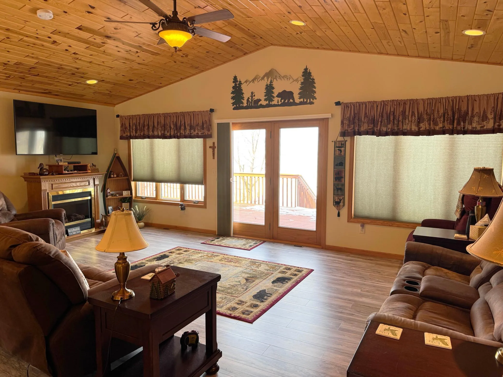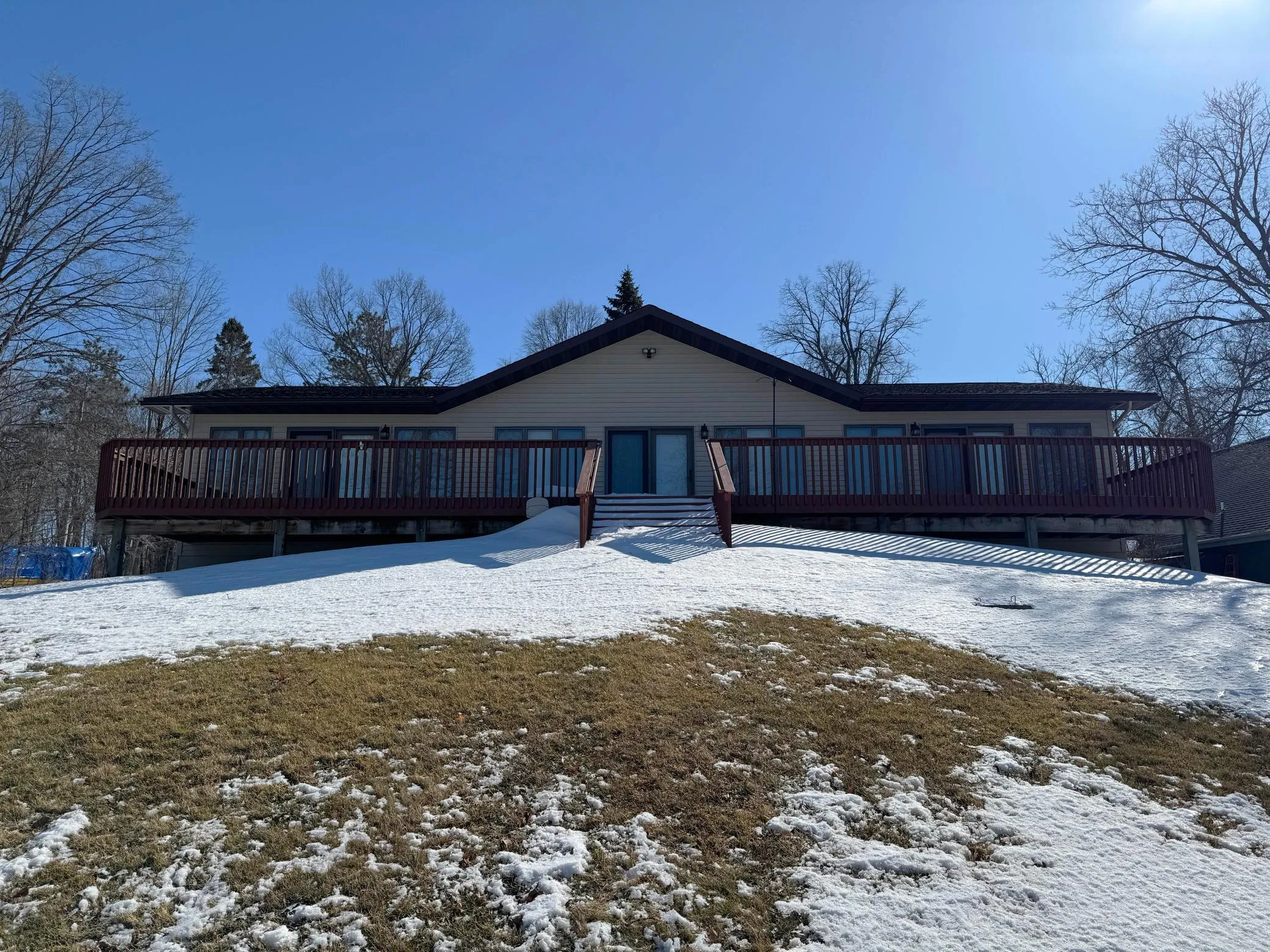 Extraordinary MilleLacs Lake home/property on a northwest facing lot, that captures the most striking sunsets and views you can imagine! Nice & private lot…the soft green lawn has the gentlest of slopes to the level lakeshore where you’ll take delight in the approx. 115′ of rock/hard lakeshore. You’ll be drawn out to the full lakeside deck from 3 different patio exit door options to sit down and relax morning, noon or night while your eyes feast on those views and sunsets. This great big 5BR 3BA home has so much space with a pleasing main floor “great room” layout w/vaulted T&G ceiling, and offers main floor living including a primary bedroom suite w/laundry inside the primary walk-in closet. Large useful rooms downstairs as well, including family room, 2 more bedrooms and a full bathroom, a storage/hobby room space of considerable size, as well as bountiful storage opportunity. Forced air upstairs PLUS in-floor boiler heat downstairs and on-demand water heater will keep you cozy warm in the winter. Maintenance free steel siding, and leaf gutters added. The 1st stall of the 4-car garage is a finished/insulated and heated shop space. You will readily notice the $15k the seller has put into shoreline improvement. Dock included. Furnishings negotiable. Midco internet.