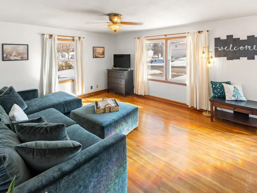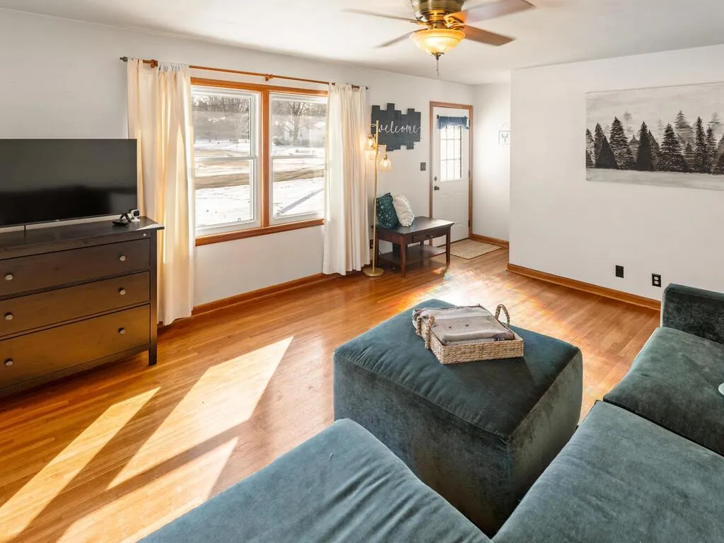 Charming and beautifully maintained 1½-story home filled with character, warmth, and thoughtful updates throughout. Located in an established Owatonna neighborhood, this 3-bedroom, 2-bath home blends timeless details with meaningful improvements that provide comfort and peace of mind. The main level features two bedrooms, a full bath, and stunning refinished original hardwood floors that add richness and classic appeal. The kitchen has been tastefully refreshed with painted cabinetry, creating a bright and welcoming space that feels both updated and inviting while preserving the home’s charm. Upstairs, you’ll find a spacious third bedroom along with a versatile loft area—perfect for a home office, reading nook, creative studio, or additional lounge space. Major improvements include new windows, exterior doors, and shutters in 2020, a new water heater in 2020, and replaced gutters, enhancing efficiency and long-term durability. The lower level offers a second bathroom along with an expansive basement providing exceptional storage and room for future finishing opportunities. A detached garage with a new garage door opener adds everyday convenience. With its blend of original character, practical updates, and flexible living spaces, this well-cared-for home is truly move-in ready and ready for its next chapter.