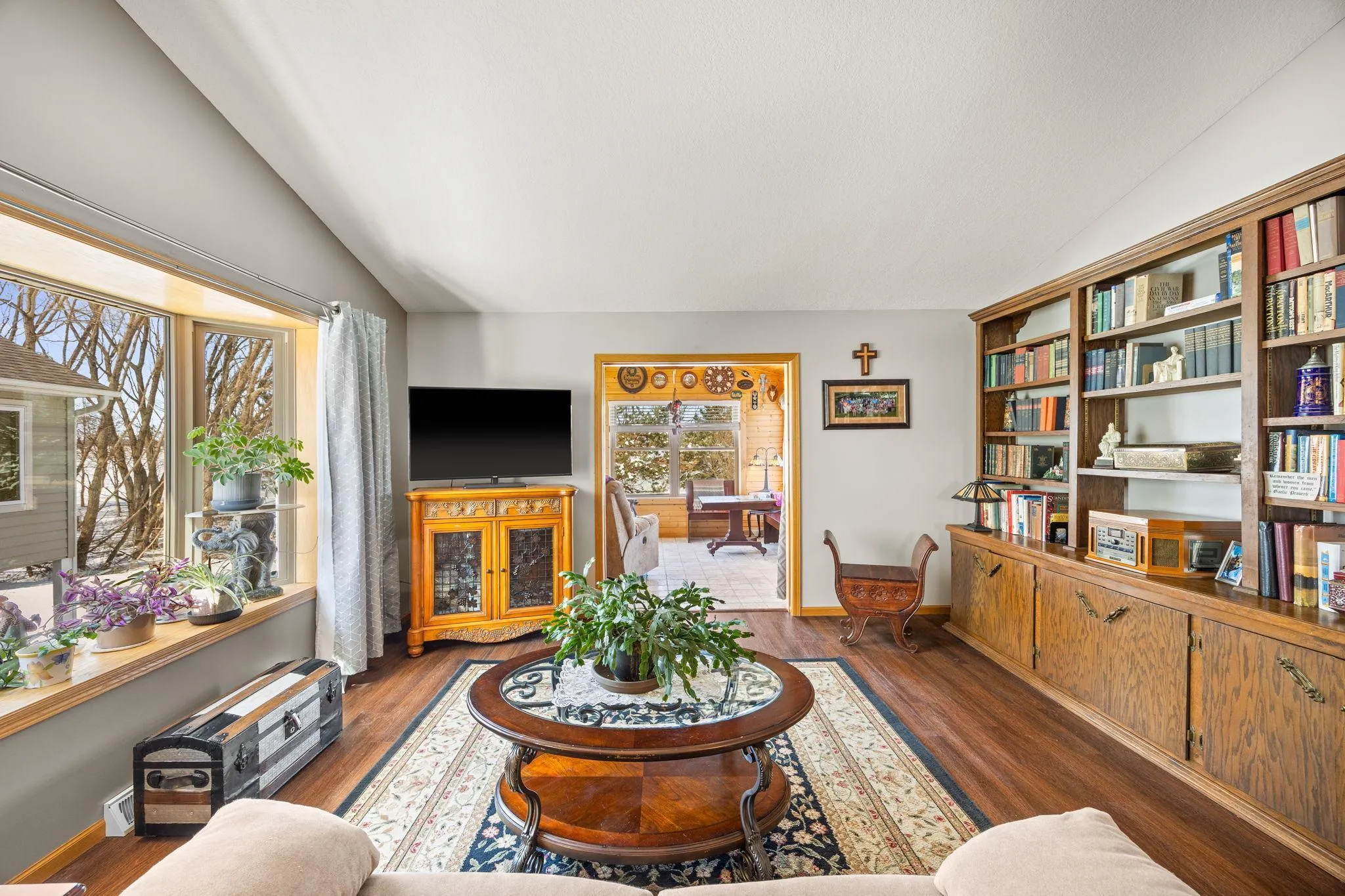 Beautiful townhome with no neighbors behind, but rather wooded treelined nature views! Main level living at its best. Large kitchen features stainless steel appliances & eat-in dining area with large windows. Kitchen opens to formal dining and living room. Bright four season porch overlooks country views & opens to new deck (2025). Main level primary suite opens to deck; full primary bathroom; walk-in closet. Main level also features laundry room & 1/2 bathroom. The full walkout basement is ready for you to finish with walls in place and a bathroom rough-in. NEW furnace, central A/C, range/oven, microwave& deck. Spacious 27×22 (almost 3-cars wide) garage would work for shop/extra storage. Lake views off of front porch. Unfinished lower level is roughed in for additional bedroom &3rd bath; walkout offers large patio& new large deck patio! Close to shoreline walking paths or paved Luce Line Trail along Winsted lake. You’ll appreciate the quiet dead-end street &walks along the lake!