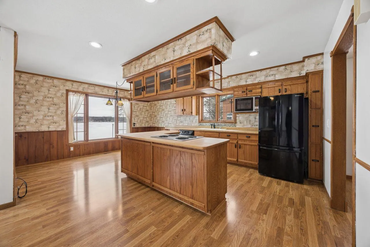 Welcome to an exceptional lakeside retreat on the shores of Lake Andrew, where space, privacy and natural beauty come together in a setting that feels peaceful and serene. Set on am impressive 1.3 acre lot with nearly 200 feet of shoreline located on a quiet dead end, this property offers a rare sense of openness and breathing room that is increasingly hard to find on today’s lake market. Lake Andrew, surrounded by a combination of state park land. Year-round home, and seasonal lake retreats, is known for its clean water, scenic surroundings and relaxed vibe, making it the perfect backdrop for long summer days, quiet mornings and unforgettable evenings by the water. The home is thoughtfully positioned to take full advantage of its surroundings, with a walkout lower level and main level living that allows the interior spaces to flow naturally and comfortably. Step inside to a warm, thoughtfully designed interior where comfort and functionally meet. A large, inviting foyer welcomes you in and immediately draws your eye toward serene lake views, setting the tone for the home’s open and airy feel The main level offers three bedrooms conveniently located on one level, along with a dedicated office featuring custom built-ins – ideal for working from home or managing daily life with ease. At the heart of the home, a striking two-sided fireplace creates a natural division between the living and dinging spaces, providing both ambiance and architectural interest while maintaining an open connected layout. The eat-in kitchen is designed for everyday living and entertaining alike, offering generous space for positioned for convenience and efficiency. This interior layout balances inviting communal spaces with practical private areas, all anchored by beautiful lake views and a seamless flow throughout the main living level. Step outside to the lakeside deck, located close to the water, where morning coffee, sunset dinners and gatherings with friends all feel effortless and organic. The expansive yard stretches gracefully to the shoreline, offering endless opportunities for outdoor games, gardening, entertaining, grilling or simply soaking in the peace and privacy that this oversized lot provides. Adding even more flexibility is a charming bunkhouse above the detached garage that currently serves as storage but has the potential to be finished as a hobby space or extra room for guests. This is a property that invites you outdoors, encourages connection to the water, and offers a truly rare footprint on one of the area’s most beautiful lakes. A setting like this does not come along often, and when it does, it is something truly special.