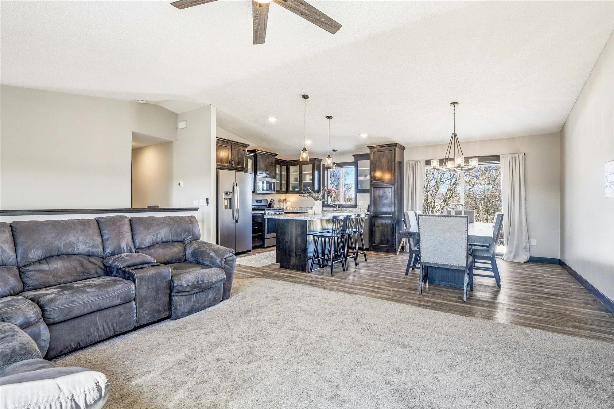 Welcome to this beautifully maintained 5 bedroom, 3 bathroom bi-level home in the desirable Isanti Meadows neighborhood! This spacious home offers over 2,500 finished square feet designed for both comfort and functionality. The upper level features an open concept layout with brand new carpet, a bright living room highlighted by a cozy built-in electric fireplace, and a lovely kitchen with stainless steel appliances. Three bedrooms are conveniently located on the upper level, including a private primary suite complete with its own bath. The recently finished lower level expands your living space with two additional bedrooms, a 3/4 bath, and a generous family room featuring a second electric fireplace. Step outside to enjoy a spacious, fully fenced backyard with an in-ground sprinkler system. The home also boasts 18 solar panels for energy efficiency and savings, plus an impressive 4-stall attached garage offering ample room for your toys. This move in ready home combines modern updates, energy efficiency, and space in a great location – don’t miss it!