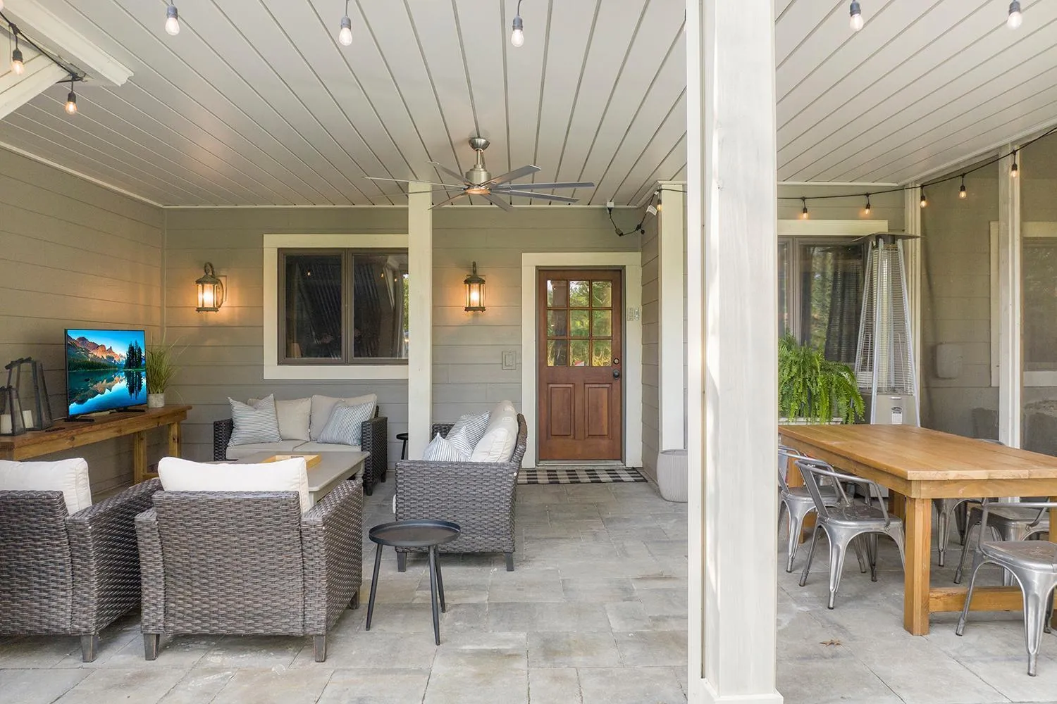 Welcome to The Territory — where resort-style amenities and refined craftsmanship create an exceptional way of living. Nestled within one of the area’s most sought-after communities, this custom home offers access to scenic trails, parks, an iconic covered bridge, and the private Lodge Park clubhouse with a pool, splash pad, and fire pit gathering space just moments away. This executive two-story home, built by Rock Creek, sits on a private .63-acre lot and showcases exceptional craftsmanship throughout. The chef’s kitchen features custom hardwood cabinetry, hand-scraped walnut flooring, premium appliances, a gas cooktop, and granite countertops with an updated subway tile backsplash. A built-in buffet and coffee bar, along with a large center island with seating and a prep sink, add both style and everyday functionality. The adjoining dining area is accented with crown molding and French doors that open to a stamped concrete patio. The great room impresses with custom media built-ins and a gas fireplace wrapped in floor-to-ceiling stacked stone. A wall of windows overlooks the private backyard and opens to a four-season porch with a two-sided gas fireplace and peaceful views. From here, step onto the spacious deck, ideal for grilling and entertaining. The main level also includes a private office framed by a dramatic glass wall, a powder room with shiplap accents, and a well-designed mudroom. Upstairs, the primary suite offers a luxurious retreat with vaulted ceilings, hardwood floors, and a wall of glass that opens to a secluded balcony. The spa-inspired bath features heated floors, dual vanities, a soaking tub, and a tiled shower. Two additional vaulted bedrooms share a full bath, while the upper-level laundry connects to a private east wing with a study nook, bonus room, fourth bedroom, and ¾ bath—ideal for guests or multi-generational living. The walkout lower level is designed for entertaining with an expansive amusement room, a second stone fireplace, and a sit-down wet bar complete with beverage refrigerators. French doors lead to a private theater room, while a fifth bedroom and a ¾ bath with heated floors complete the level. Professionally designed landscaping enhances the peaceful backyard, featuring a main-level deck with gas fireplace, a lower patio with retractable screens, a paver fire pit area, and mature trees providing privacy and natural beauty. Come for a visit—stay for a lifetime. This is more than a home; it’s a life destination.