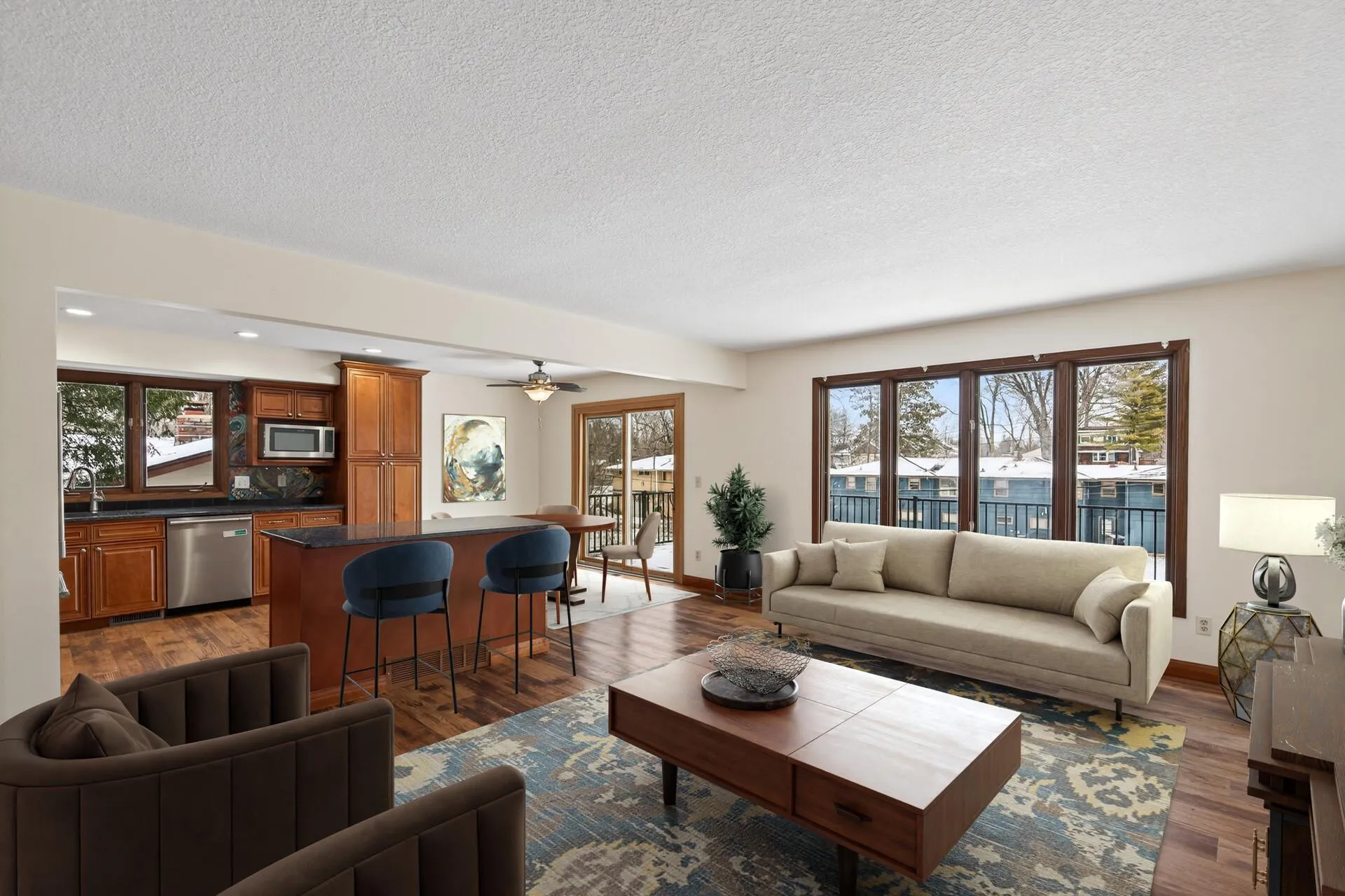 Located in a quiet Crystal neighborhood close to shopping and restaurants, this well-maintained home offers a rare open-concept main level not typically found in homes of this style. The spacious kitchen flows seamlessly into the living area and features a center island, beautiful cabinetry with soft-close doors and drawers, granite countertops, stainless steel appliances, and a one-of-a-kind custom backsplash designed by a Texas artist. The main level includes two bedrooms, including a larger bedroom that can be used as the primary, along with a full bathroom. Recent updates include new flooring in the entryway and stairways, a new furnace in 2026, and sliding doors on both the main and lower levels. The lower level offers a comfortable family room highlighted by a full brick fireplace wall with built-in shelving on each side. You’ll also find a laundry room, an updated 3/4 bathroom with a walk-in tiled shower, and two additional bedrooms. Outside, enjoy a maintenance-free deck added in 2021, a two-car attached garage with bonus side storage, and a nicely sized asphalt driveway. Thoughtful updates throughout, including LVP flooring, exterior paint, and remodeled bathrooms—make this home truly move-in ready.