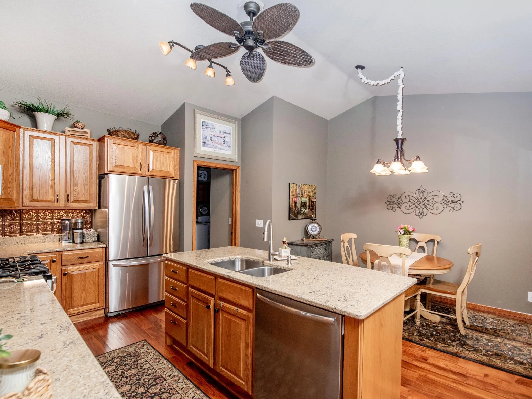 Main-Level Luxury & Convenience — Designed for effortless living, this home features all essential facilities on the primary floor. Enjoy soaring vaulted ceilings and a cozy gas fireplace in the light-filled living room. The primary suite offers a private retreat, while the refreshed laundry room — complete with new 2023 appliances — adds to the home’s turnkey convenience.