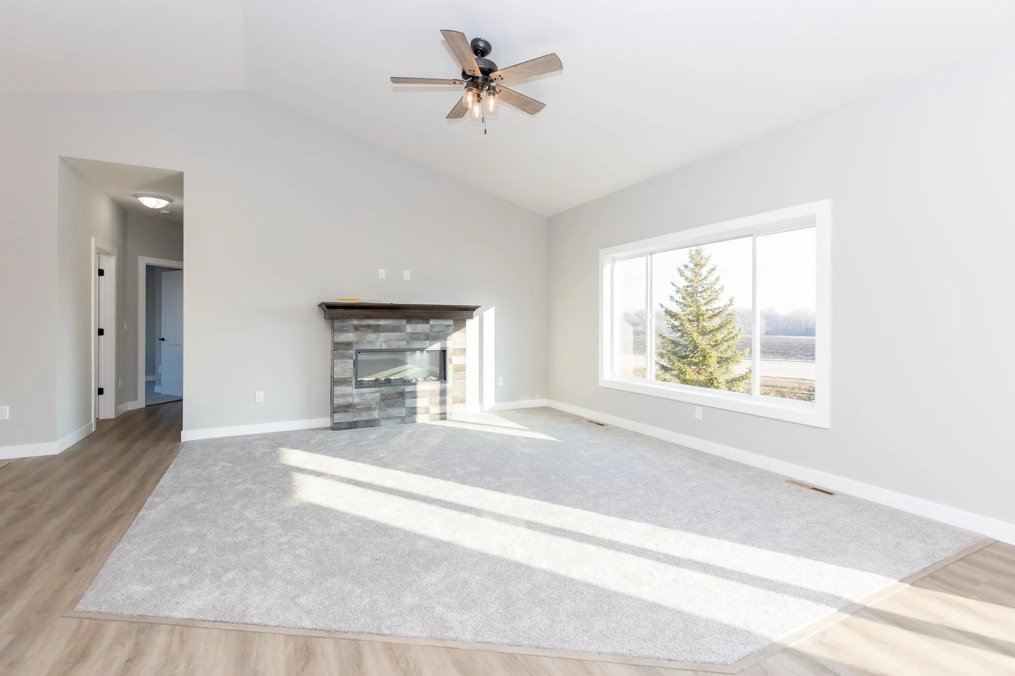 Wonderful new walkout rambler on great lot with views of countryside, main floor laundry, oversized 3 car garage. front porch, custom cabinets, concrete driveway, center island, primary bath, electric fireplace, LVP flooring. excellent layout and easy one level living. Come see this home today!!