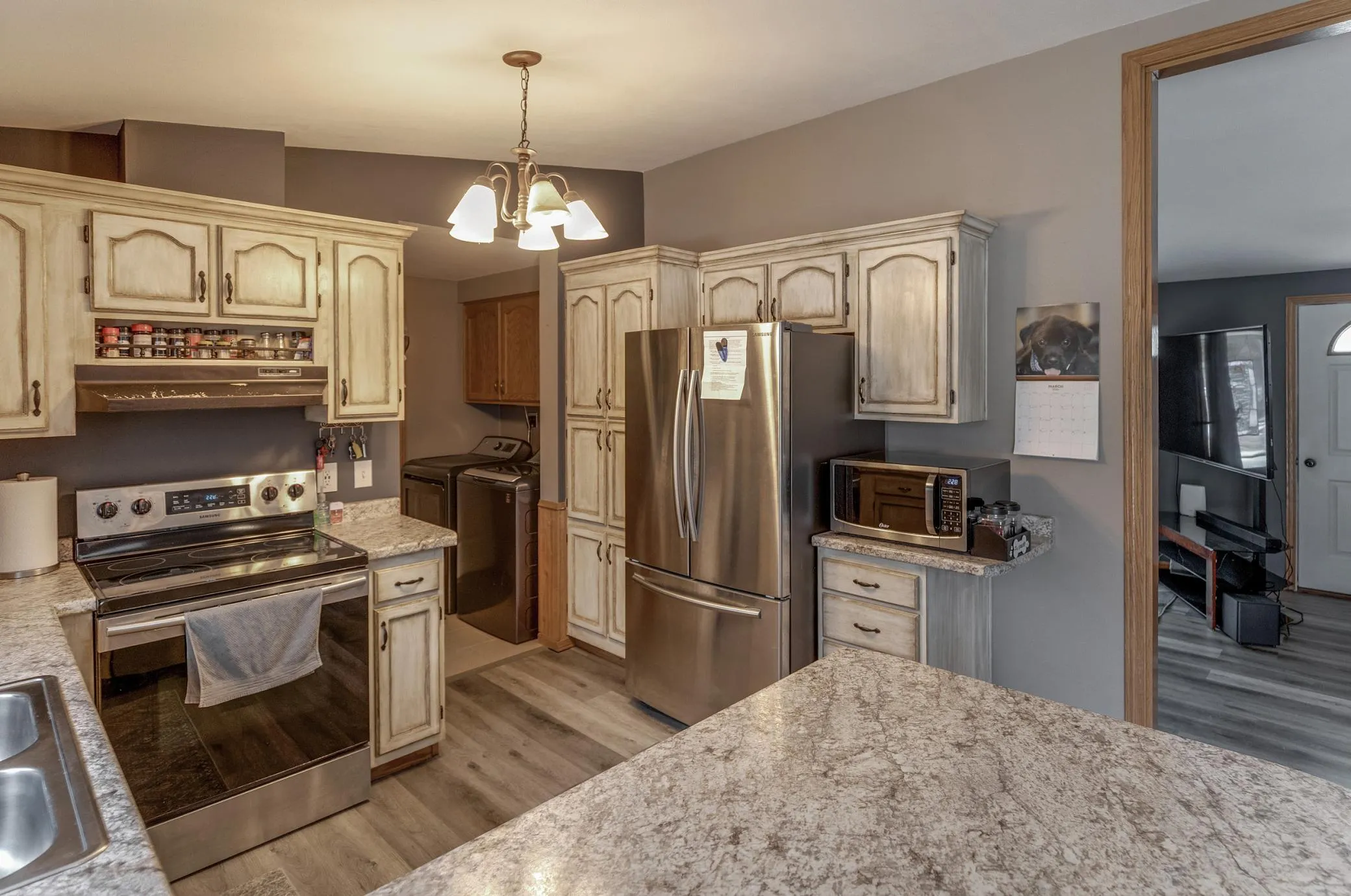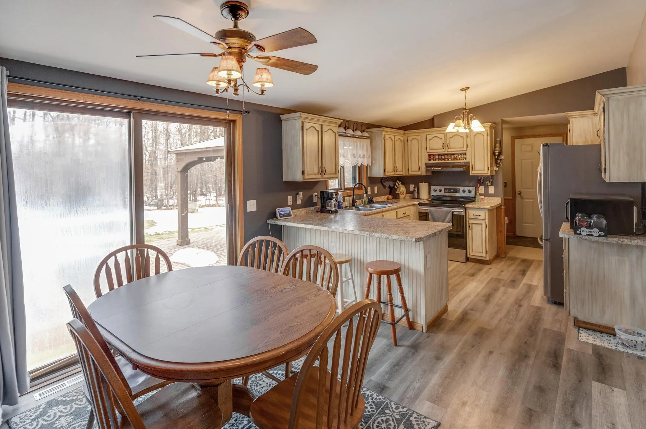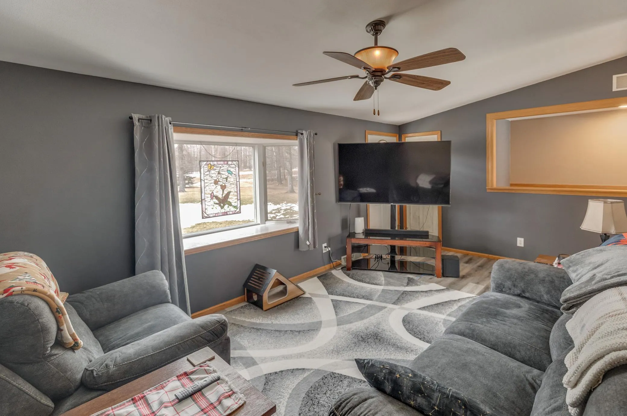 Cedar-sided home situated on a 5-acre partially wooded parcel offering a private rural setting on a paved county road between Walker and Bemidji. The property provides a nice balance of mature trees and open yard space, with a level homesite and spacious front and back yards. The home features vaulted ceilings, a main-floor primary bedroom with full bath, and an updated kitchen with stainless steel appliances. The finished basement includes a wonderful family room along with an additional finished room that would make an excellent office, hobby room, or overflow space. Recent improvements include newer central air, furnace, and gutter systems. Additional highlights include a two-stall attached garage, rear patio area, and a charming red barn-style shed for additional storage. A comfortable country setting with the convenience of paved road access and close proximity to area lakes and outdoor recreation.