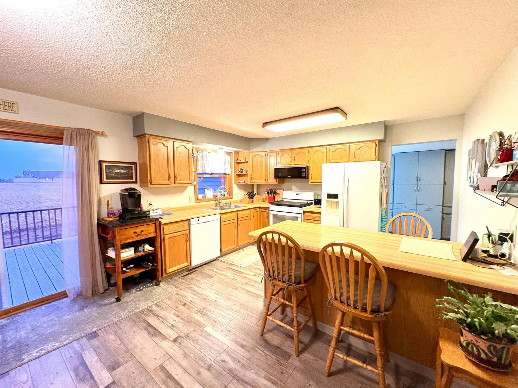 Charming rambler on a desirable corner lot featuring 4 bedrooms and 2 full baths! Step inside to a spacious entryway with beautiful built-in cabinets offering excellent storage. The open dining and kitchen area includes a convenient breakfast island and ample cabinet space, perfect for everyday living and entertaining. A sliding door off the dining area leads to a maintenance-free deck overlooking a field, creating a peaceful setting that blends the convenience of in-town living with a relaxing country feel.