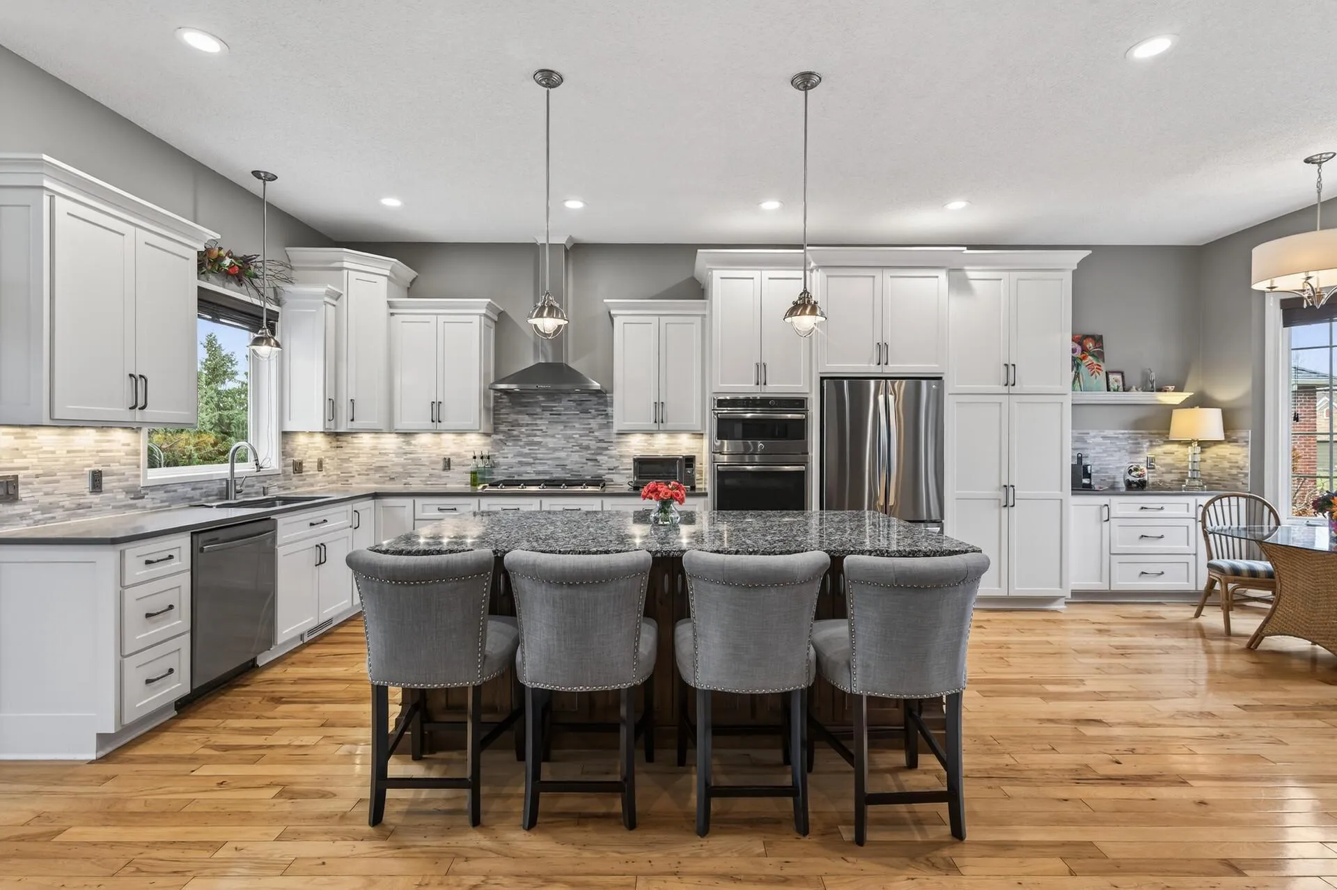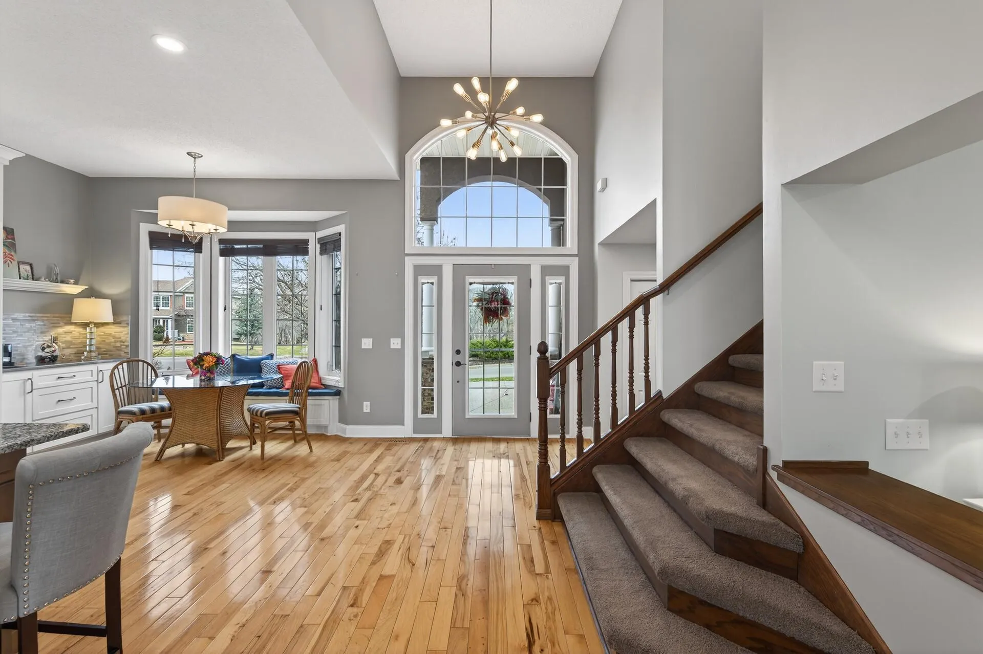 Beautiful walk-out home in The Wilds community. Bright open floor plan showcasing custom cabinetry and premium finishes including Silestone, quartz, and granite throughout. Rich hickory hardwood floors and custom lighting enhance the main living spaces, anchored by two gas fireplaces. Four bedrooms on the upper level including a spacious primary suite with heated floors in the private bath and a convenient Jack-and-Jill bath.