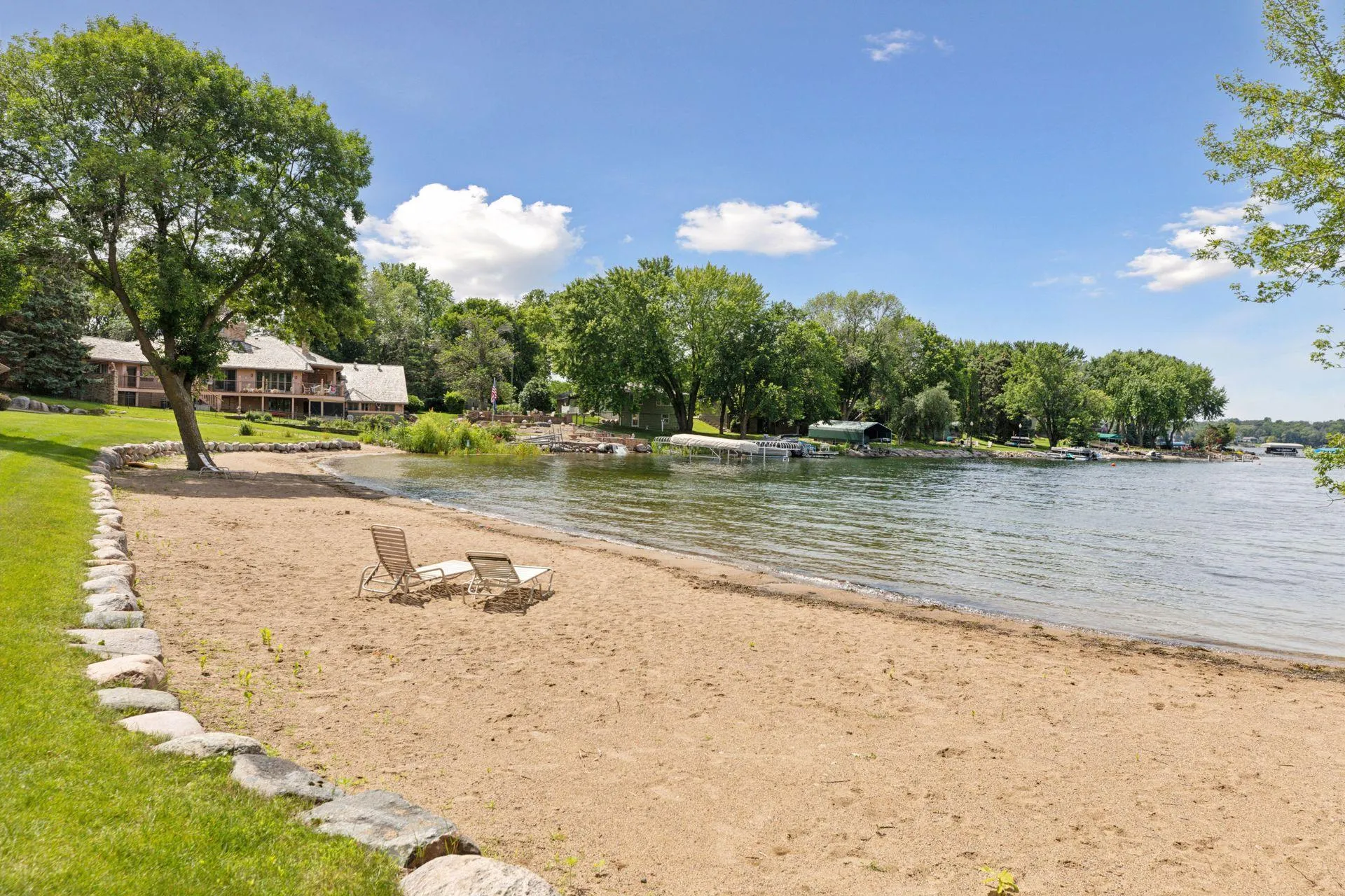 Rare main level living end unit townhome in The Harbor on Prior Lake! Resort-like living! Lakeside heated pool, tennis/pickleball/sport court, sandy beach, firepit, and dock with private boat slip. NEW siding and sidewalk! Custom, high-quality craftsmanship, and contemporary design. Longtime owners of over 25 years. 3 bed + office. Main level primary bedroom has high ceilings, full bath ensuite, and two closets, including a walk-in closet. Main level laundry. Deck with treehouse vibes. Lots of natural light, walls of windows, and skylights. West facing! Updated lighting and paint. Kitchen has granite, rollouts, bar, eat-in dining, and an opening to the second dining & living room with fireplace. Upper level has a loft with wet bar, bedroom, and full bath. Lower level has family & recreation rooms, second wet bar, and brick fireplace. Lower level walks out to a private patio. Hot tub room with beautiful cedar. Open concept, vaulted ceilings, wood floors, built-ins, recessed lighting, stair lights, & central vacuum. Lake lifestyle awaits!