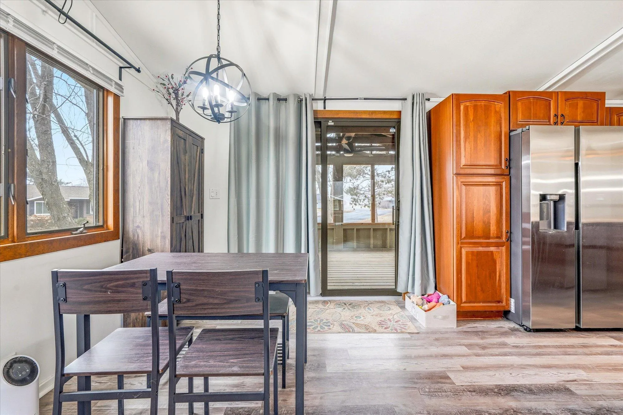 Nicely updated 5 bed, 3 bath home on almost ½ acre corner lot in a quiet neighborhood in North Hudson. 4 beds and 2 baths in the main home, and 1 bed and 1 bath in the attached studio apartment addition. The upper level is spacious and open concept – with living, dining, kitchen, 2 beds and bath. The kitchen has abundant cherry cabinetry, stainless appliances, a massive island with granite counters, and tiled backsplash. A large 3 season porch connects off the dining room. The lower level includes 2 bedrooms, a flex room that could be another sleeping area or a family room, a 3/4 bath, an area for workout or office, and laundry room. The stuido aaddition includes a very large bedroom, a smaller area for office, workout, or flex space, a ¾ bath, and kitchenette. This addtion has two entrances one from the garage and one from the back of the home. There is a newer concrete patio in the back, that great for entertaining. Attached garage is 2 car, insulated. Roof new in 2022.