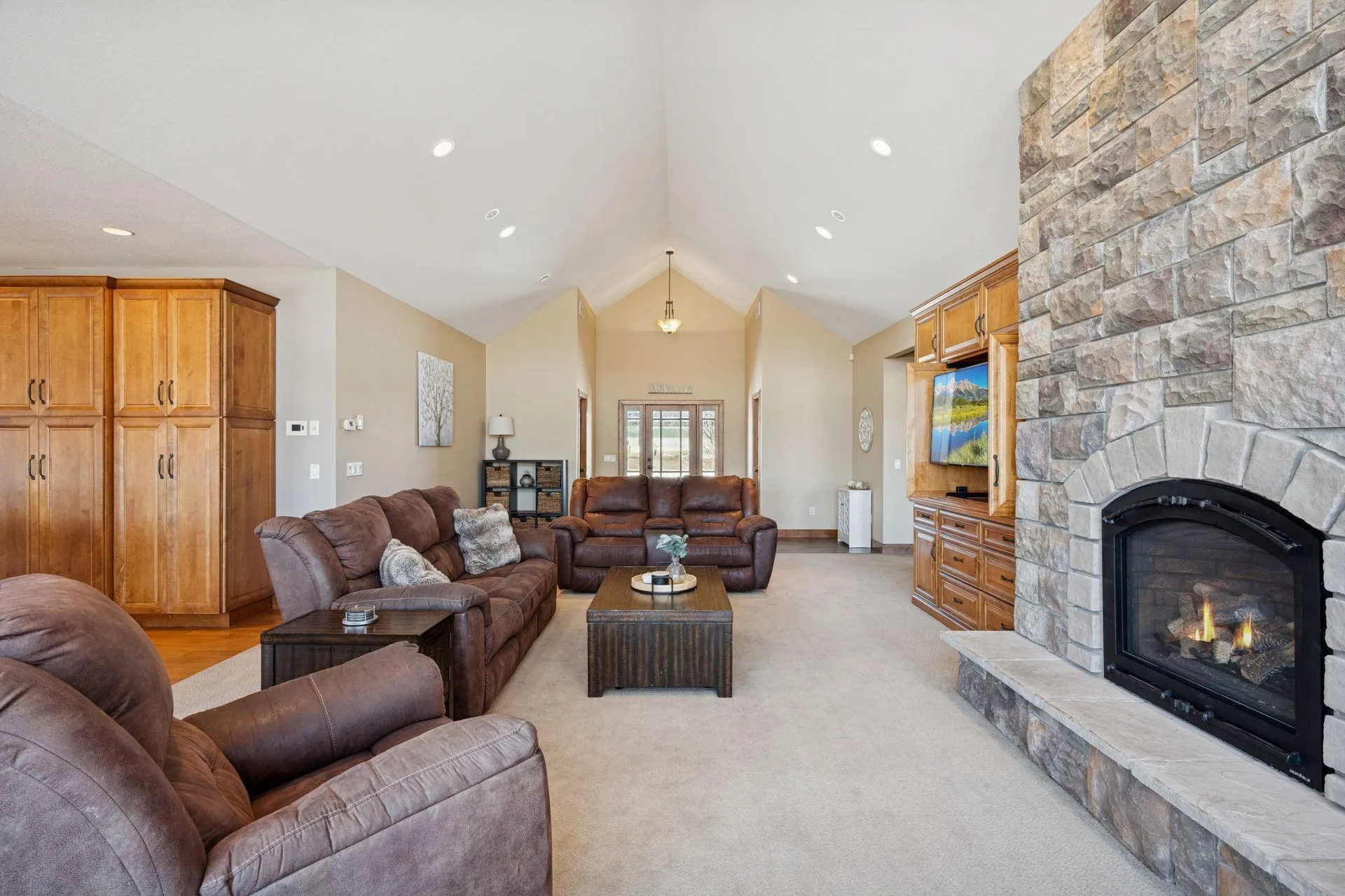 Golfer or not, you’ll love the sweeping views of River Crest Golf Course from this custom ranch-style home on 2.44 acres in the premier Eagle Ridge neighborhood. Built in 2007, the open floor plan offers comfort and style for everyday living or entertaining. The main level provides true one-level living with 2 bedrooms, a den, laundry, a great room with a fireplace, a dining room, and a chef’s kitchen with a large center island. The lower level adds 2 more bedrooms, a workout room, abundant storage, and a spacious family/rec room with a second fireplace – perfect for movie nights and game days. Step outside to enjoy the landscaped yard, deck, and patio overlooking the course. HOA ($600/yr) includes pool, tennis, basketball, and access to 100 acres of trails along the Minnesota River Valley. Just minutes from town – schedule your private showing today!