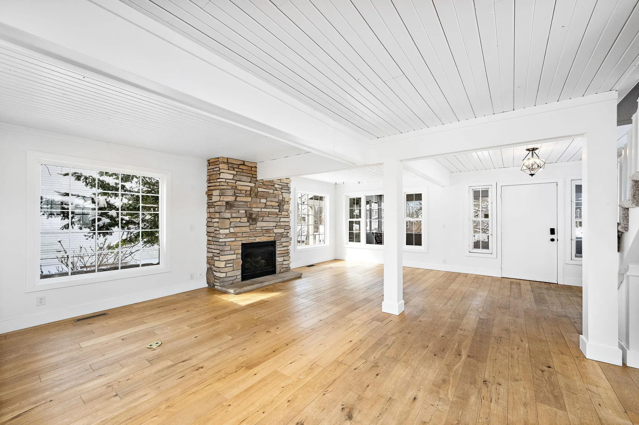 Adorable and cozy cottage just two blocks from White Bear Lake and Chautauqua Park, perfectly situated near the charming downtown Mahtomedi. Mahtomedi Schools. Inviting screened-in front porch. Main floor features beautiful hardwood floors and a charming living room with gas-burning stone fireplace, large windows offer lots of natural light. The main floor family room boasts a striking feature wall and built-in cabinets, offering both style and practical storage. The dining room features modern light fixture, providing a perfect setting for meals and gatherings. Kitchen features newer stainless steel appliances and includes convenient main floor laundry. Updated paint throughout the home and new carpet on the upper level. Upstairs, three bedrooms share 3/4 bath, while a full bath is located on the main floor. Walk-out deck with a fully fenced in backyard. One-car tuck-under attached garage plus two off-street parking spaces in front of the home. Enjoy lake cottage living, close to the city!