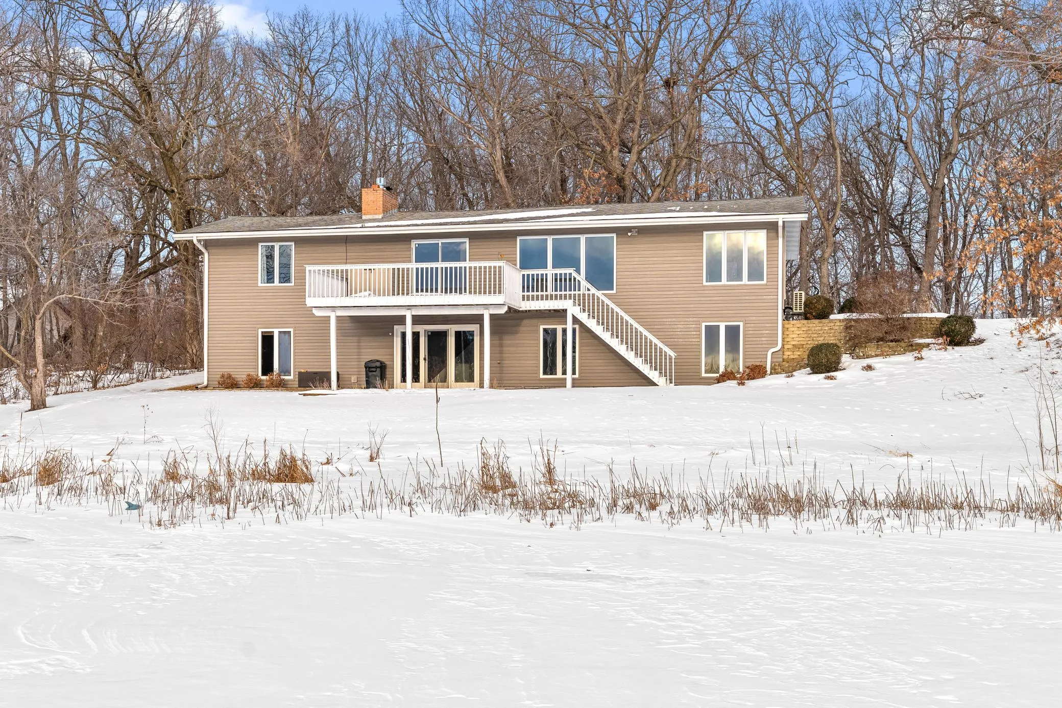 Set on almost 4.7 private acres with an incredible 200+ feet of level lakeshore on Chain Lake. This exceptional 4-bedroom, 2-bath rambler offers the perfect blend of space, scenery, and serenity – just minutes from town and freeway access. Tucked at the end of a dead-end road and surrounded by mature trees, this property delivers true privacy with panoramic, west-facing lake views and unforgettable sunsets.