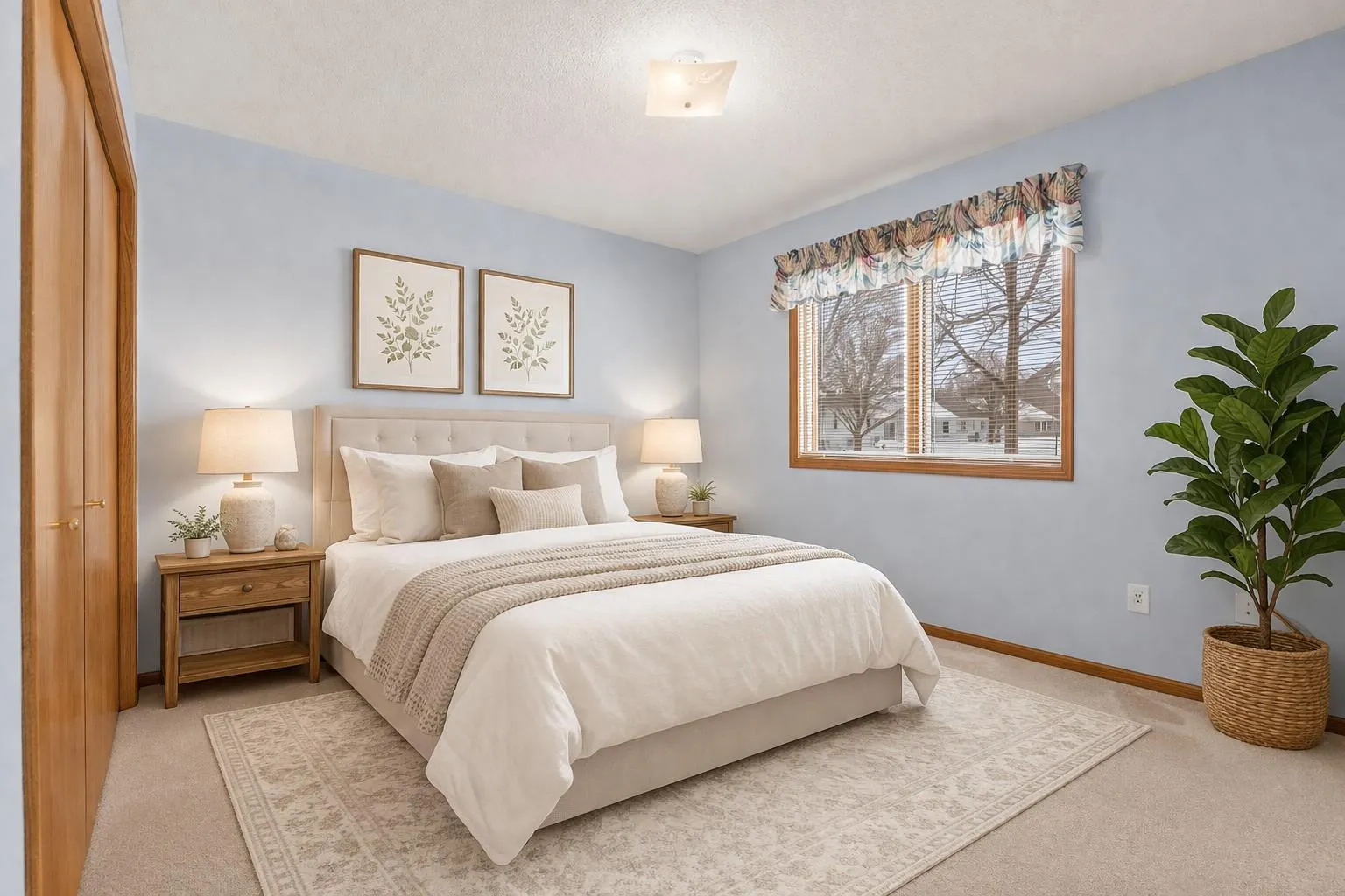 Meticulously maintained one-owner twin home offering convenient one-level living with all facilities on the main floor. This home features 2 bedrooms and 3 bathrooms, including a private primary suite with its own bathroom. The open floor plan includes a spacious living room with a tray ceiling and gas fireplace, creating a warm and inviting gathering space. The kitchen features a center island and flows into the informal dining area, ideal for everyday living and entertaining.