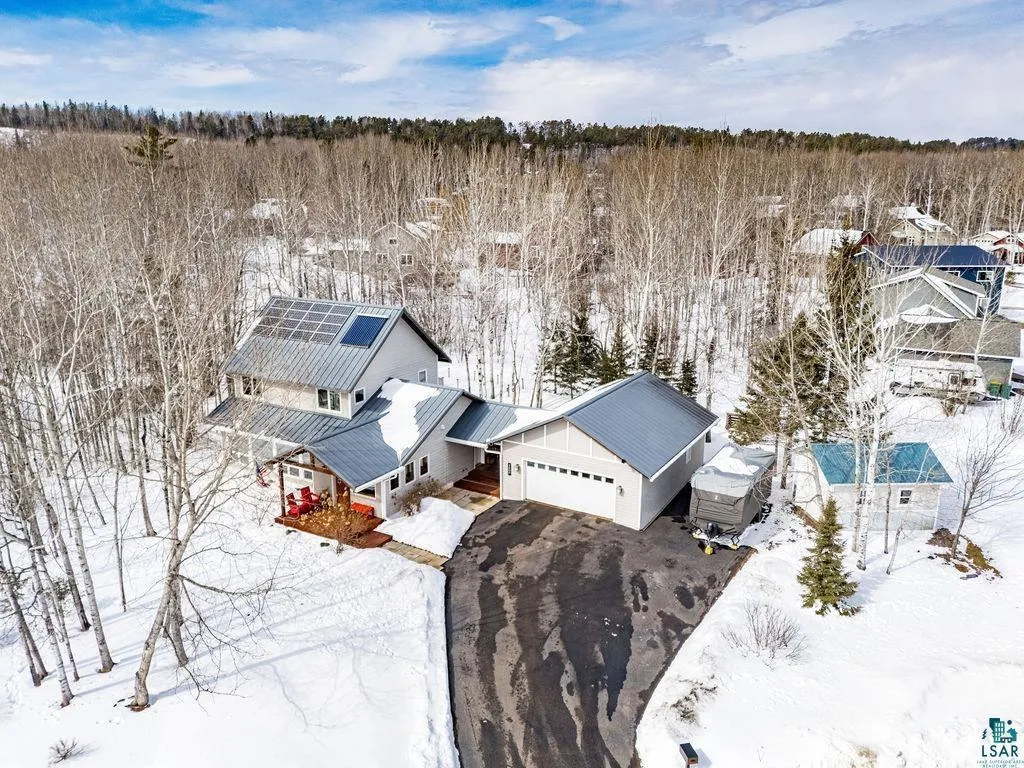 Nestled in Hawks Ridge on a quiet dead-end road, this beautifully maintained 3-bedroom, 2-bath home offers a seamless blend of comfort, efficiency, and natural surroundings. With a spacious 2-stall garage (and a beautiful sauna room), a large shed (2017) wooded privacy, and direct access to nearby trails, it’s the perfect setting for those who value both convenience and the outdoors. Step inside to a bright, inviting interior filled with natural light and thoughtfully updated finishes throughout. The cozy living room features a gas fireplace, while the open-concept kitchen and dining area create an easy, functional flow for everyday living and entertaining. The main level also includes a bedroom, full bath, storage/utility room and a convenient laundry/mudroom. Upstairs, you’ll find two additional bedrooms, a second full bath ,and a flexible bonus space ideal for a home office, reading nook, or rec area. Designed by Wagner-Zaun Architecture and built by Women in Construction, this Green-Built home incorporates passive solar design, solar electric, and solar hot water—delivering impressive energy efficiency and a healthier living environment. With approximately 2,000 square feet, in-floor heat, and high-performance construction, comfort and sustainability go hand in hand. Quality finishes include ceramic tile, cork and FSC-certified wood floors, quartz countertops (2026), beautiful cherry cabinetry, S/S appliances (late 2025) triple-pane windows, on demand hot water heater/boiler on demand heat (2024), new gutters (2022), gas garage heater (2023) and a durable metal roof. Set within a peaceful, wooded development rich with wildlife, and surrounded by hiking, biking, and skiing trails, this home offers a lifestyle that’s just as exceptional as the home itself. Schedule your showing today, you will not want to miss this gorgeous home!