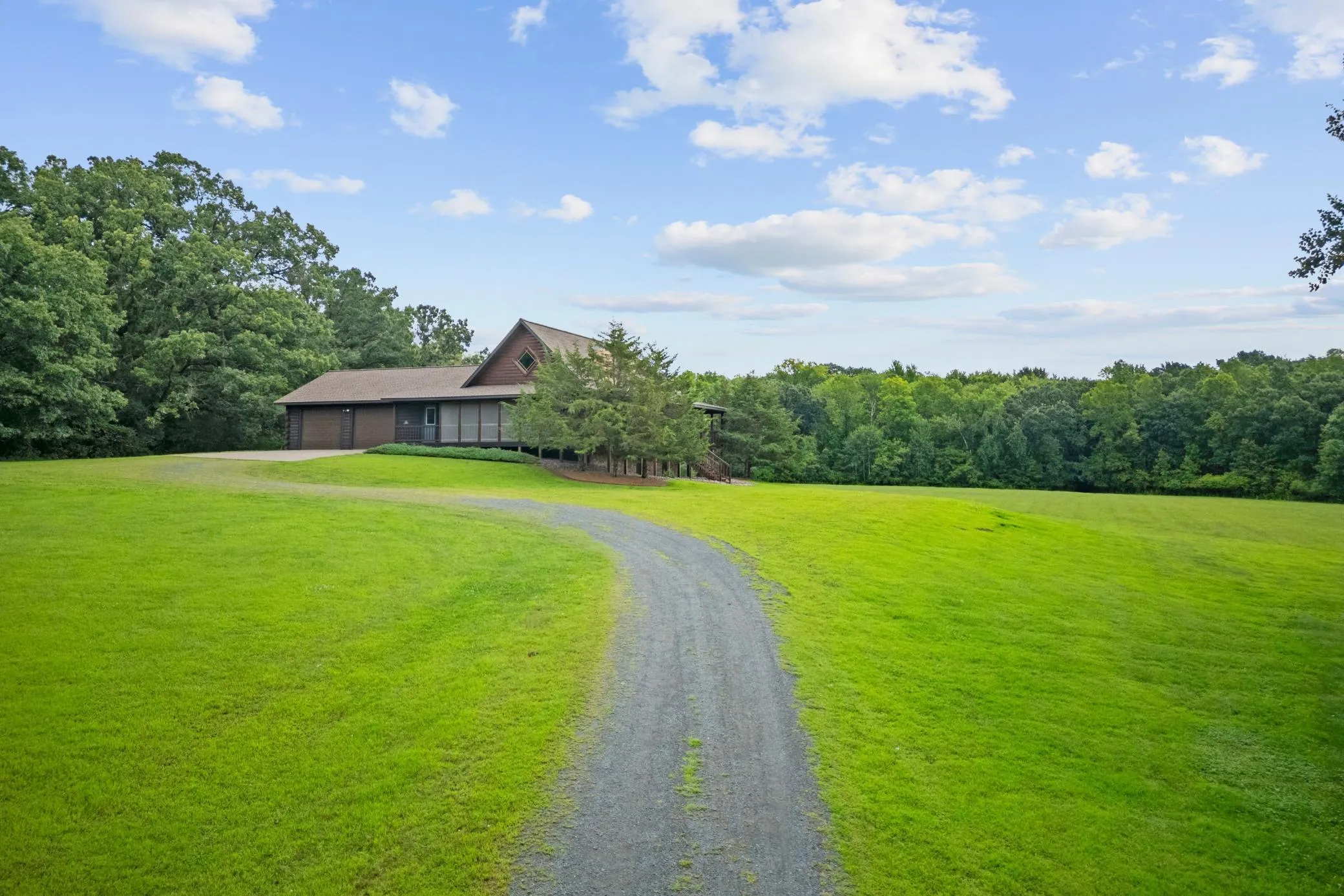Nestled just minutes from town and only an hour from the Twin Cities, this extraordinary log cabin estate offers nearly 70 acres of unmatched beauty and possibility. Every element of this custom-built home has been thoughtfully designed, blending rustic charm with modern comfort. Birch wood floors, custom maple cabinetry, and hand-selected finishes showcase craftsmanship rarely seen today, while the wrap-around porch with a screened-in area invites you to extend your living space outdoors.
