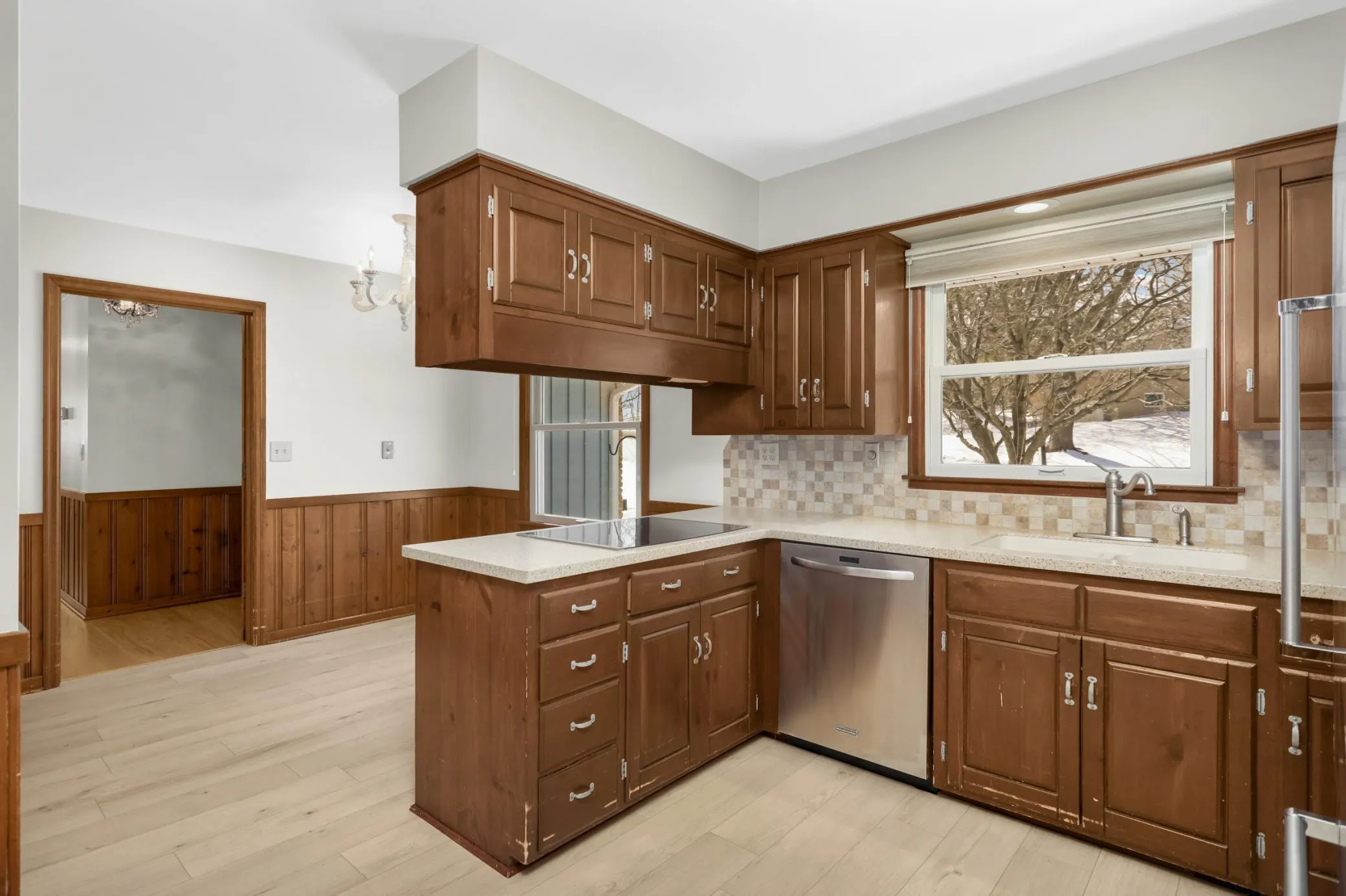 Privately set on a quiet Golden Valley cul-de-sac just steps from Sochacki Park, Sweeney Lake, and miles of scenic trails, this beautifully maintained home has been proudly owned by the same family for 43 years and features over $190,000 in thoughtful improvements. Inside, oak hardwood floors, matching oak trim and built-ins, and fresh interior paint create a warm and inviting feel. The spacious living room is anchored by a classic brick-hearth fireplace and flows into a formal dining area overlooking the backyard. The updated kitchen features quartz countertops, stainless steel appliances, double oven, tile backsplash, walk-in pantry, and abundant cabinetry. The main level offers three bedrooms, including a private primary suite with walk-in closet and ¾ bath. The walkout lower level adds generous living space with a large family room centered around a second wood-burning fireplace, two oversized bedrooms, and flexible space ideal for guests or work-from-home needs. A renovated screened porch with six-inch wood flooring overlooks the flat backyard and connects seamlessly to the patio and yard below. Major improvements include a new roof, Andersen double-pane windows, high-efficiency HVAC and central AC, water heater, refinished hardwood floors, new carpeting, and extensive exterior updates. Located near Theodore Wirth Regional Park, paved biking and walking trails, a public kayak launch on Sweeney Lake, and just minutes from downtown Minneapolis, highways, and The Shops at West End, this home offers a rare combination of privacy, character, and convenience.