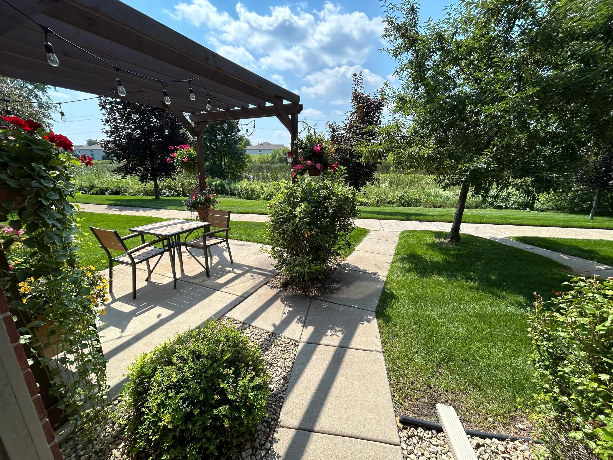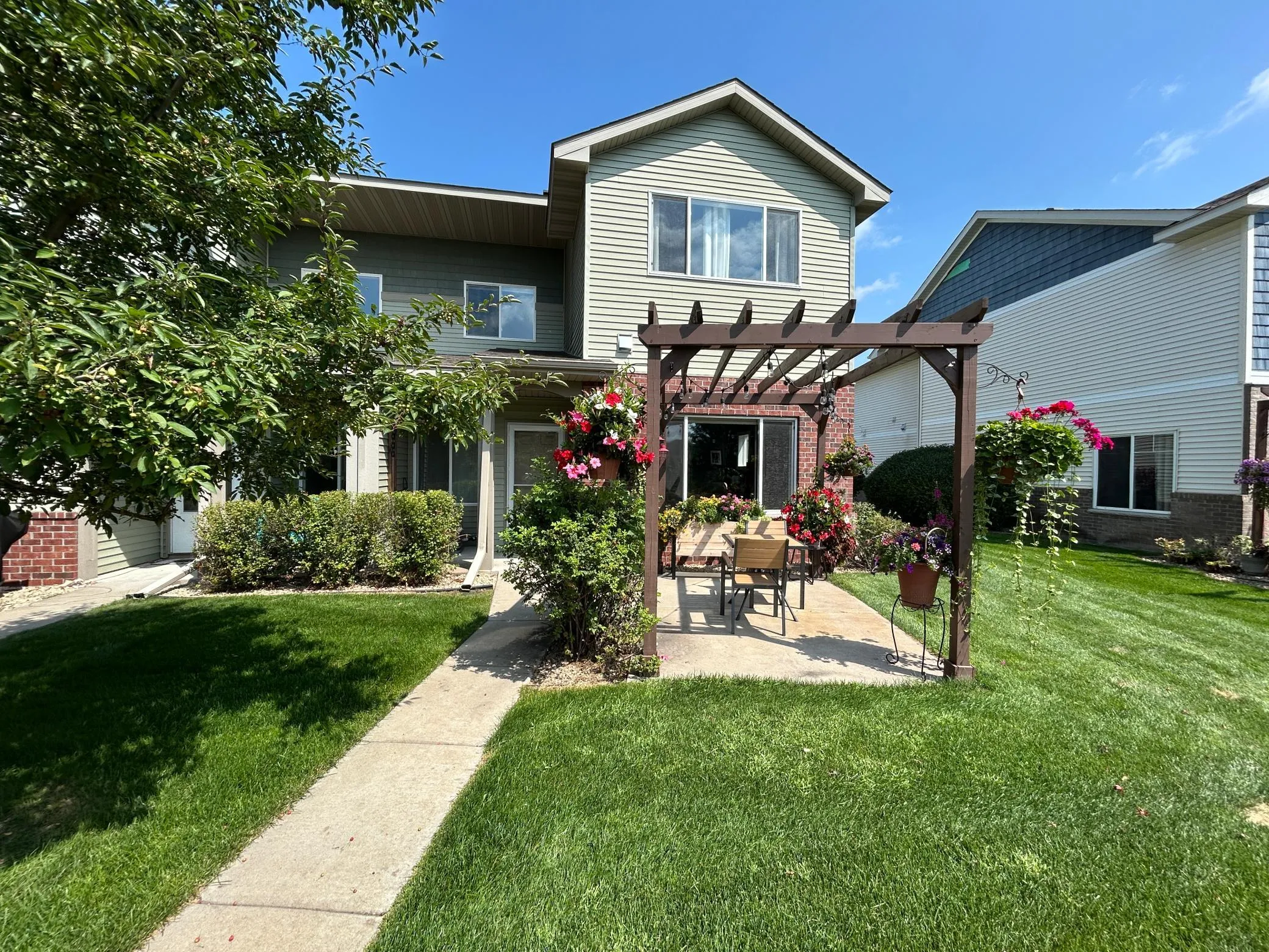 Welcome home to this beautifully designed 3-bedroom, 3-bath home offering space, style, and convenience. The main level features a spacious kitchen with a massive island/peninsula, perfect for meal prep, casual dining, and entertaining. The kitchen opens seamlessly to the large dining and living room, creating an inviting, open-concept layout. A convenient half bath completes the main floor. Just off the dining area, step through the patio door to a generous patio with a pergola, ideal for relaxing or hosting guests. Enjoy the added bonus of walking trails accessible directly from the patio, providing easy access to outdoor recreation right at home. The upper level offers two large bedrooms filled with natural light, a full bathroom, and upper-level laundry for everyday convenience. Additionally the spacious primary suite serves as a private retreat, featuring a huge walk-in closet and a full private bath. This home perfectly blends comfortable living with low-maintenance convenience in a fantastic setting – don’t miss your opportunity to make it yours!