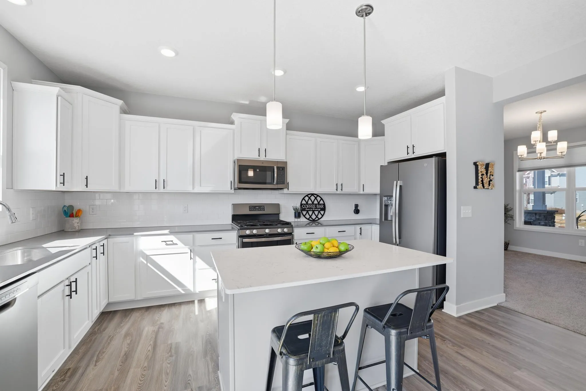 Traditional two-story home with a welcoming front porch, ideally situated on a spacious corner lot. Step inside to a bright, sun-filled main level featuring an open and inviting layout. The kitchen showcases beautiful cabinetry with new hardware, a classic subway tile backsplash, stainless steel appliances, quartz countertops and a generous pantry closet. The comfortable living room features a gas fireplace with a stunning stone surround. A versatile front flex room offers the perfect space for a home office or formal dining area. Tucked away from the main living spaces, you’ll find a thoughtfully designed mudroom with custom built-ins, a closet, and a charming powder room. The three-car garage includes a two-foot bump-out, great for accommodating longer vehicles. Upstairs, the well-appointed second level features four spacious bedrooms, including a primary suite with a walk-in closet and a spa-like bath. An additional full bathroom with a dual quartz vanity and conveniently located laundry complete the upper level. The lookout lower level is unfinished and ready for your vision—offering the potential to add a fifth bedroom, bathroom, family room and ample storage space. Recent updates and enhancements include custom blinds throughout (with blackout shades in the bedrooms), designer accent walls, new kitchen hardware, a water softener, gutters, a large deck off the dining room and custom mudroom built-ins. Fantastic location close to Twin Lakes Elementary, parks, shopping, dining, and more. Don’t miss the opportunity to make this exceptional home yours!