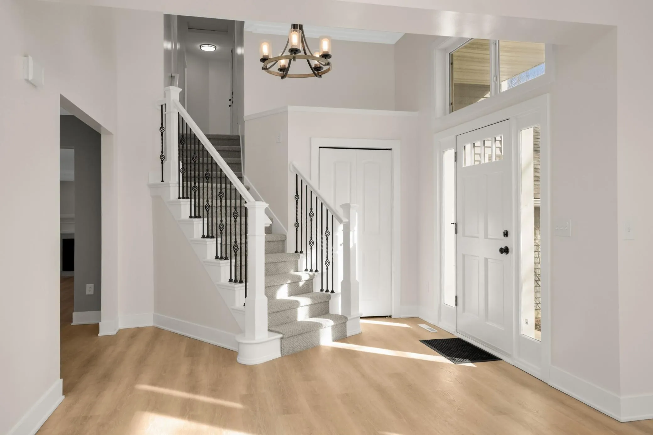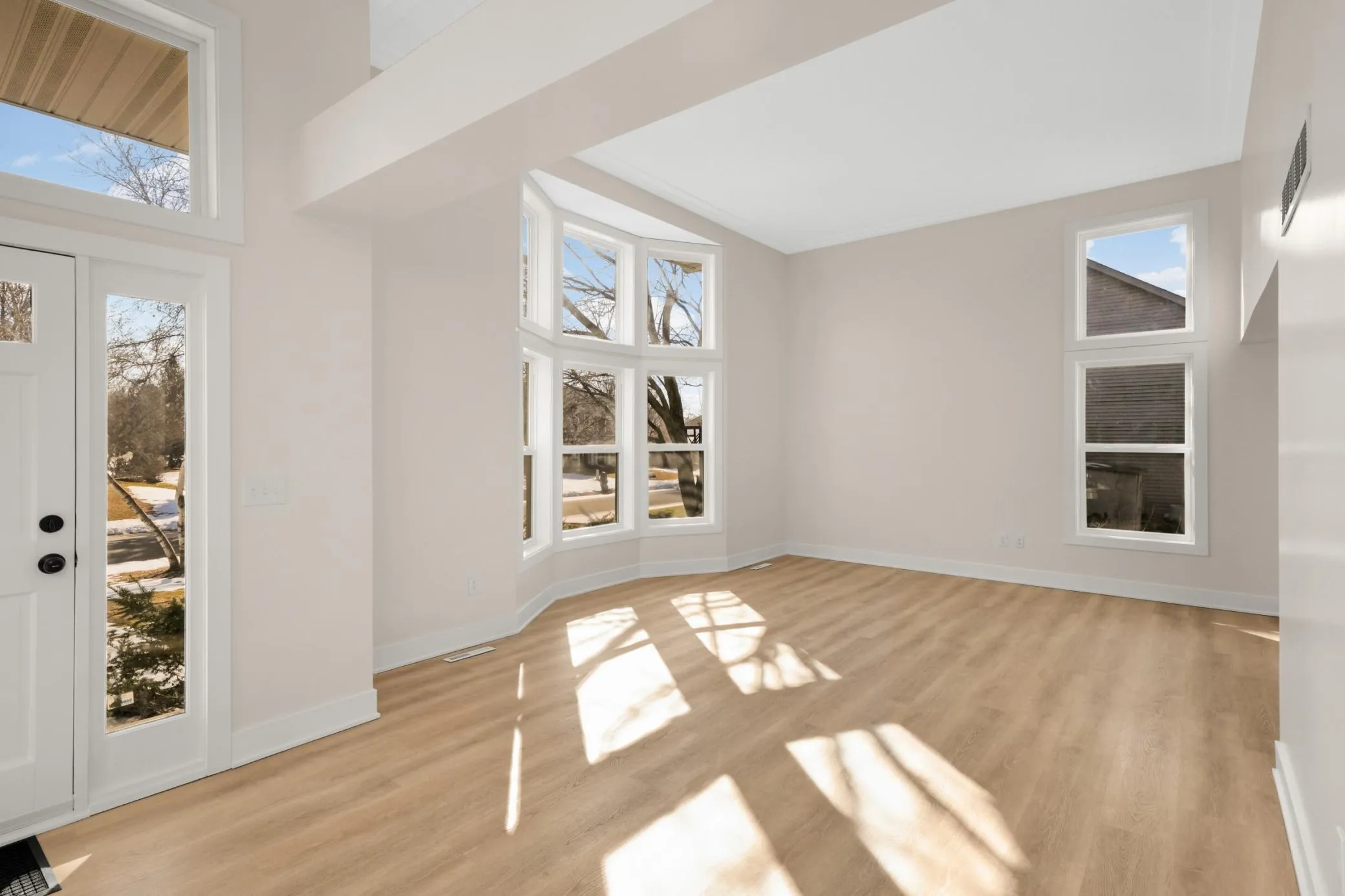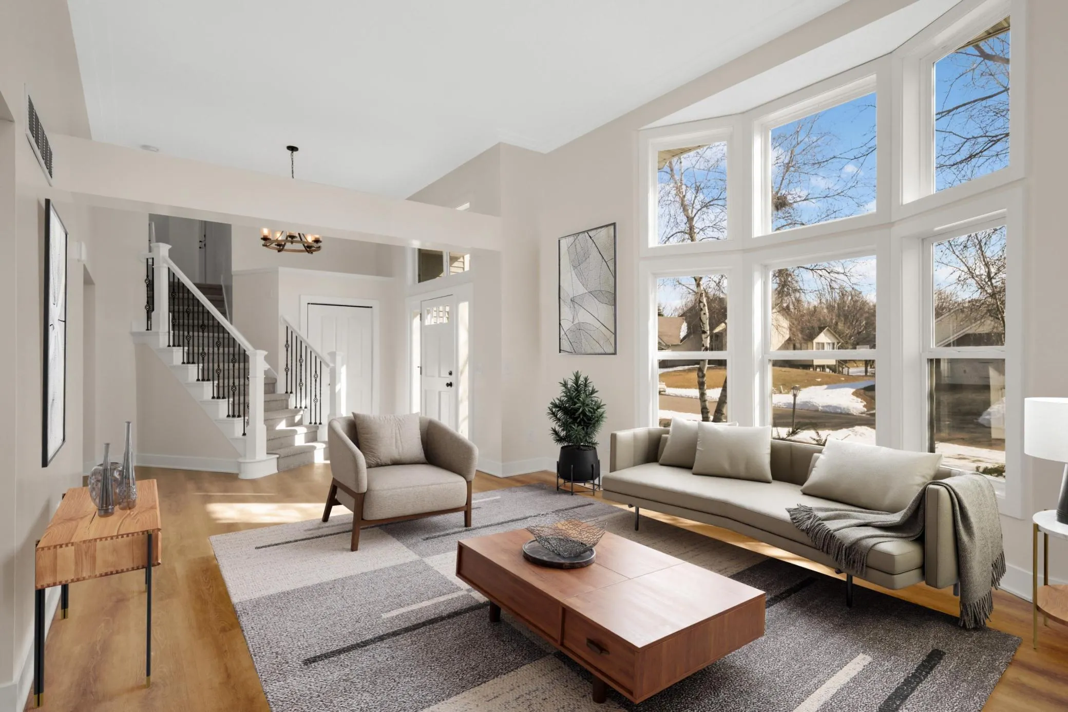 A MUST SEE! Spacious updated 5-Bed/4-Bath modified two-story in a very convenient Lakeville location! Shows like new! Updated kitchen with white cabinets, quartz countertops, stainless steel appliances & breakfast bar! Fabulous main floor family room with gas fireplace & wall of windows! Light & bright living room with 12-foot ceilings! Main floor office/bedroom! Main floor laundry! LVP floors! New carpet! White two-panel doors! Fresh paint! 4 new bathrooms!! 3-Bedrooms on upper level! Large vaulted primary bedroom with walk-in closet & luxurious new primary bathroom! Newly finished lower level includes family room, bedroom with walk-in closet & new ¾ bathroom! Lower level also includes a storage room & mechanical area! New roof, siding & windows (2021)! New washer & dryer (2026)! New range (2026)! Maintenance free deck! Great location – just one block to Steve Michaud Park, Crystal Lake Golf Course & just a couple minutes to Crystal Lake Beach & Lac Lavon Park & Ball Fields! Very easy access to 35W! Lakeville schools! Quick closing possible! Hurry!