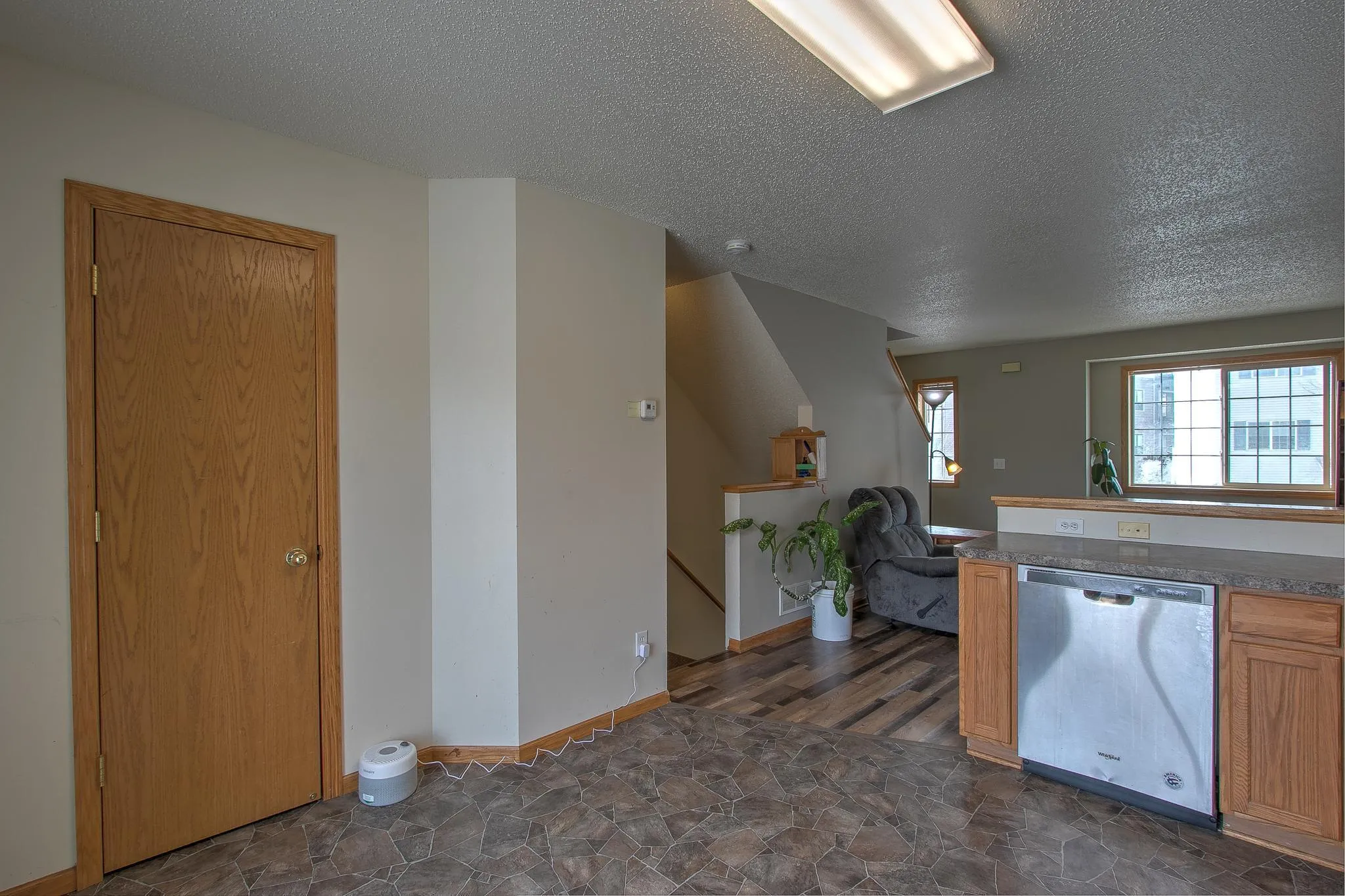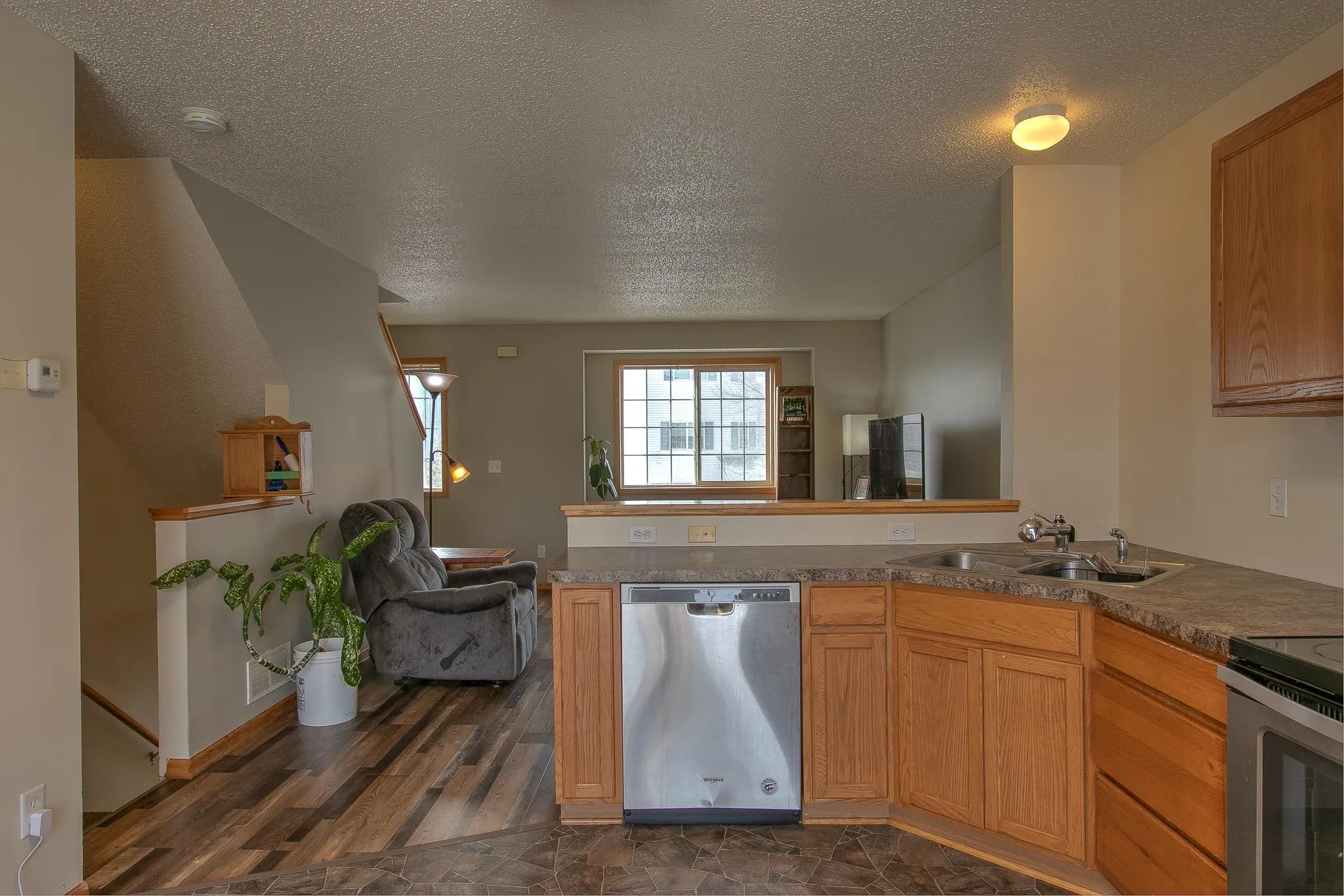 Comfortable townhome located near walking trails and parks. This 2 bedroom 2 bath home has the convenience of laundry up by the bedrooms. It boasts new laminate flooring in the living room. Enjoy the natural light that comes through the sliding doors in the kitchen leading out to the deck. Oversized garage with storage and all of the mechanicals are in the garage utility room. Welcome Home!