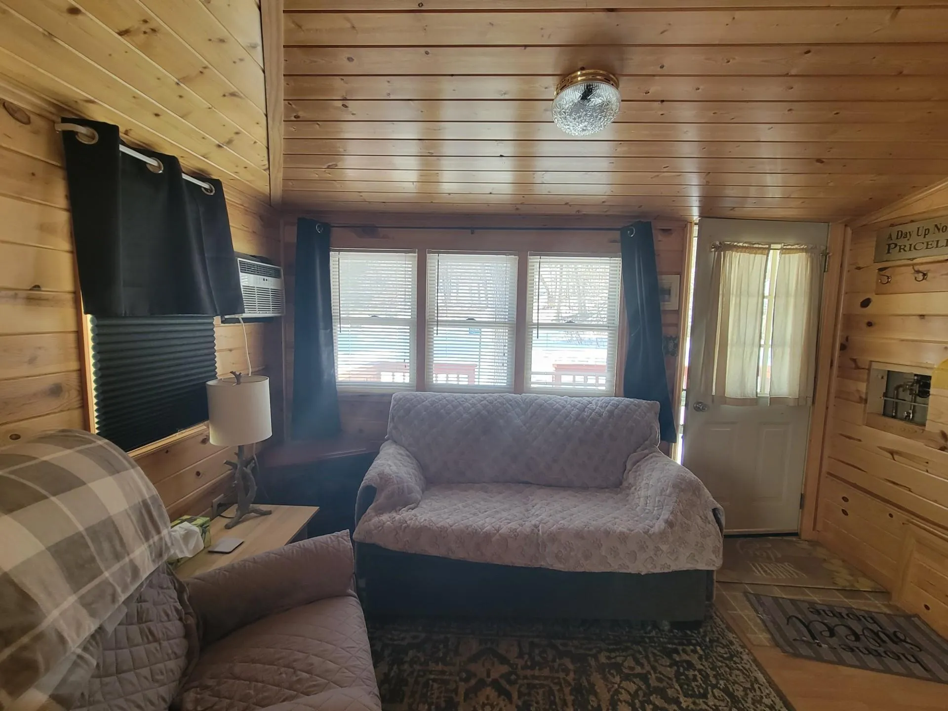 This charming seasonal cabin offers the perfect getaway on a private lake, complete with association access and a peaceful stream flowing just behind the property. With 416 finished square feet, the cozy interior features two bedrooms and one bathroom, making it an ideal retreat for relaxing weekends or summer stays. The cabin comes fully furnished with everything you see, including furniture, bedding, dishes, an outdoor grill, as well as a dock and boat lift for enjoying lake life to the fullest. Recent updates add to its appeal, including a new roof, a newly built bunkhouse ( with Anderson windows) for extra sleeping space, a storage shed, and a window A/C unit to keep things comfortable on warm days. Spring has sprung, get in before summer days. Schedule your Showing today!