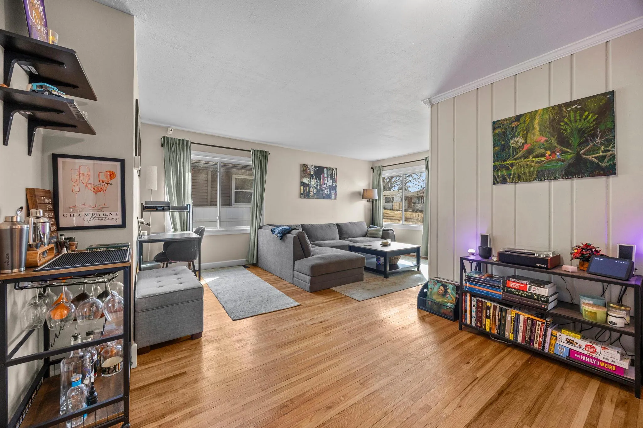 Adorable rambler with solar panels situated on a nice corner lot! Enjoy a modernized kitchen with gas range, dishwasher and eat in dining space. You’ll walk into a generous-sized living room with great natural light, original hardwood floors, and fantastic flow. The primary bedroom features a walk-in closet, and the secondary bedroom also offers a large closet. The bathroom has been updated. Enjoy the freshly updated basement living space and bonus room to fit your needs! With a newer, oversized two-car garage and a fully privacy-fenced yard, fiber internet, and close to public transit this home has everything your buyer could want!