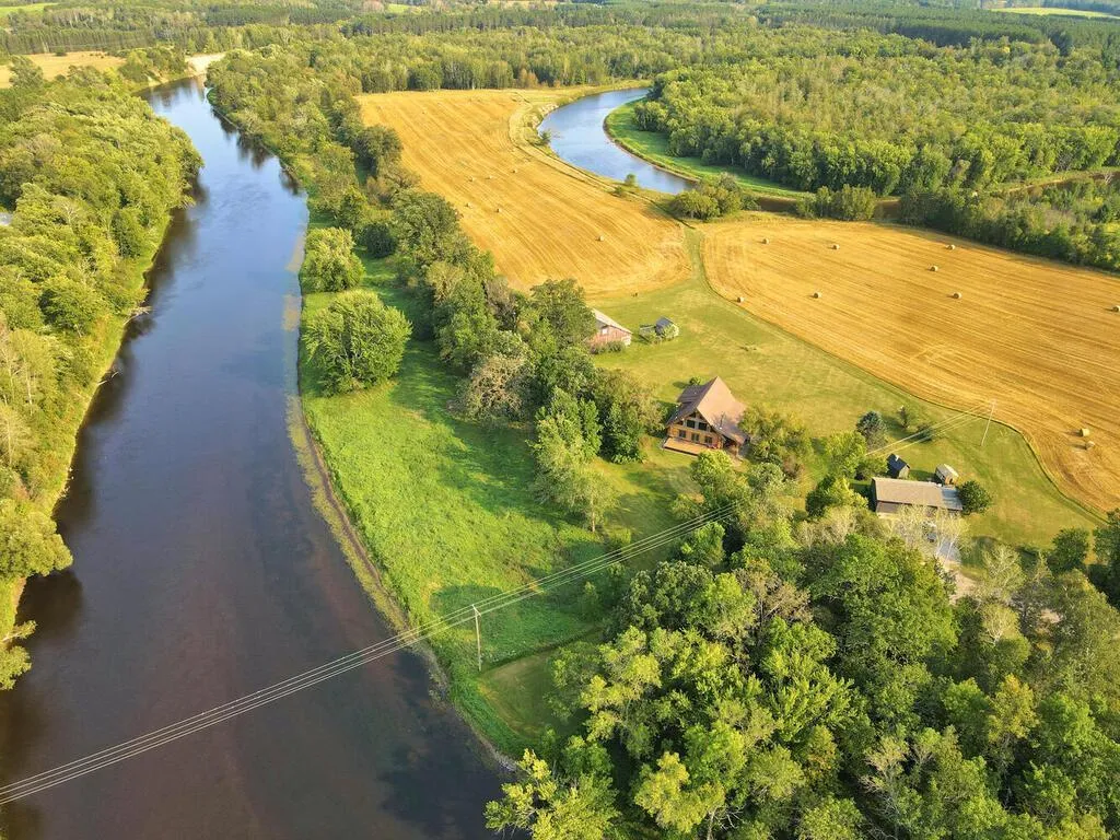 Breath taking beauty abounds with this private peninsula of 90 acres, and 7,800 feet of Mississippi River frontage. The hand scribed log home is extremely well built with insulated concrete forms, vaulted and beamed ceiling, massive wrap around deck and covered porch with recessed lighting. The very unique natural rock wood burning fireplace is a focal point in the living room. Ceramic and wood floors throughout, custom cabinets, main floor laundry, foyer entry, ¾ bath with walk in shower and main floor bedroom with lots of natural lighting. The upper level super-sized ensuite with walk in closet and bath with walk in shower is sure to please. The Lower level features a large family room with natural gas fireplace and two additional bedrooms (one non-egress) and a full bath. In floor heat on both the main and lower level, back up natural gas FA and steam humidifier system. The outdoors features an older 3,200 sq ft barn that is solid and has newer sheeting and shingles. Chicken coop, wood fired sauna and green house. The 3 plus stall garage is partially insulated and heated. This is a must-see fantastic property with trails all along the river frontage, picturesque views, and only 7 miles to Grand Rapids. Septic is compliant.