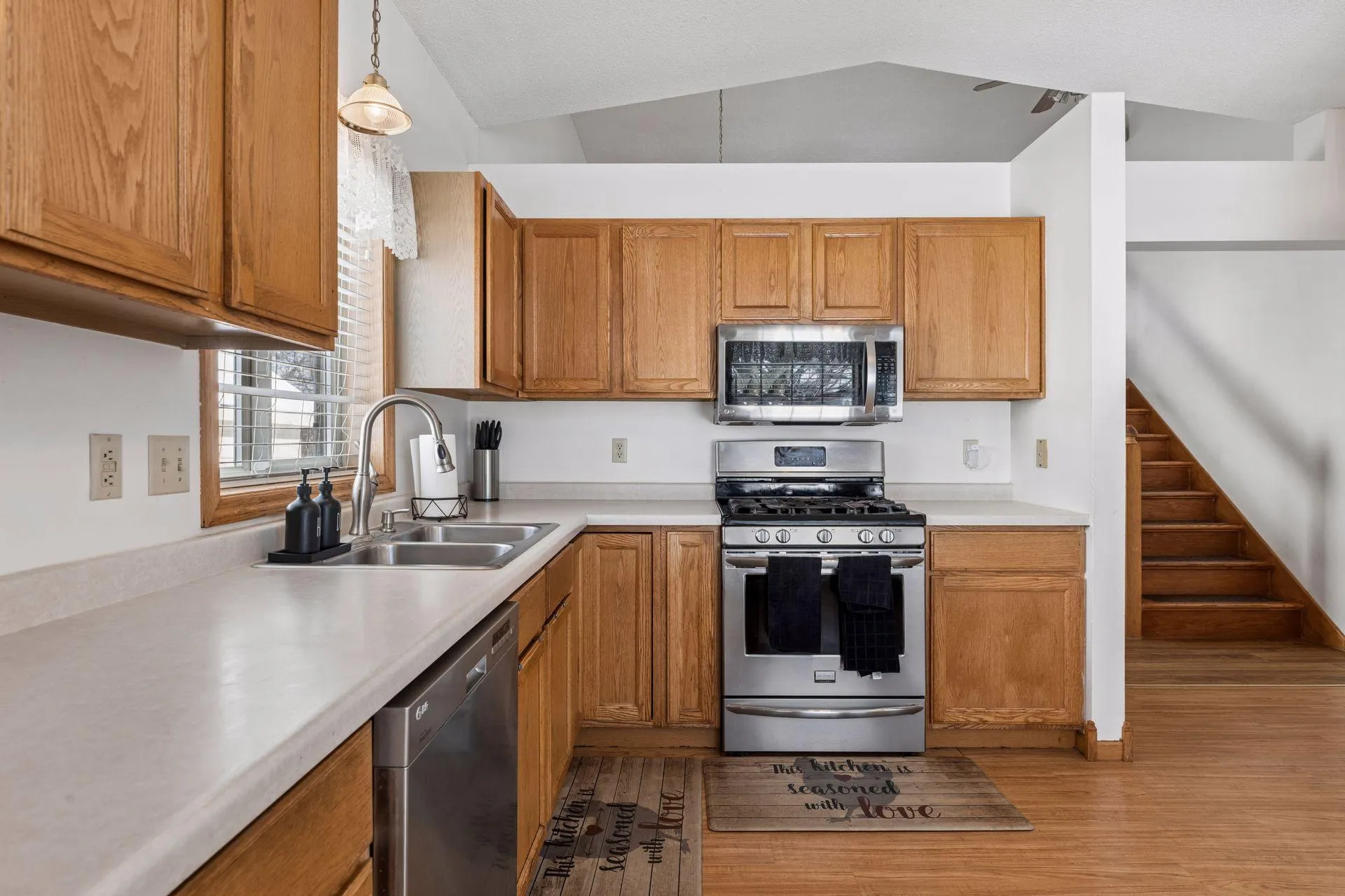 Tucked into an exceptional location, this 3-bedroom, 2-bath home offers functional layout with space to relax or entertain. Step inside to enjoy stainless steel appliances in eat in kitchen ideal for morning coffee. Spacious dining room, upper level and lower level living rooms offer multiple spaces for entertaining or hanging out. Outside, the private backyard is set up for real life and entertaining alike, featuring a walkout lower level to patio and natural surroundings. Nice sized backyard. You’ll also appreciate the 3 garage stalls and storage areas this home provides. For peace of mind, the home has a 2017 roof, siding, and gutters, along with newer HVAC systems, helping reduce the “to-do list” after closing. Convenient to shopping, parks, schools, golf, trails and major employers, this is a standout opportunity in a highly desirable area.