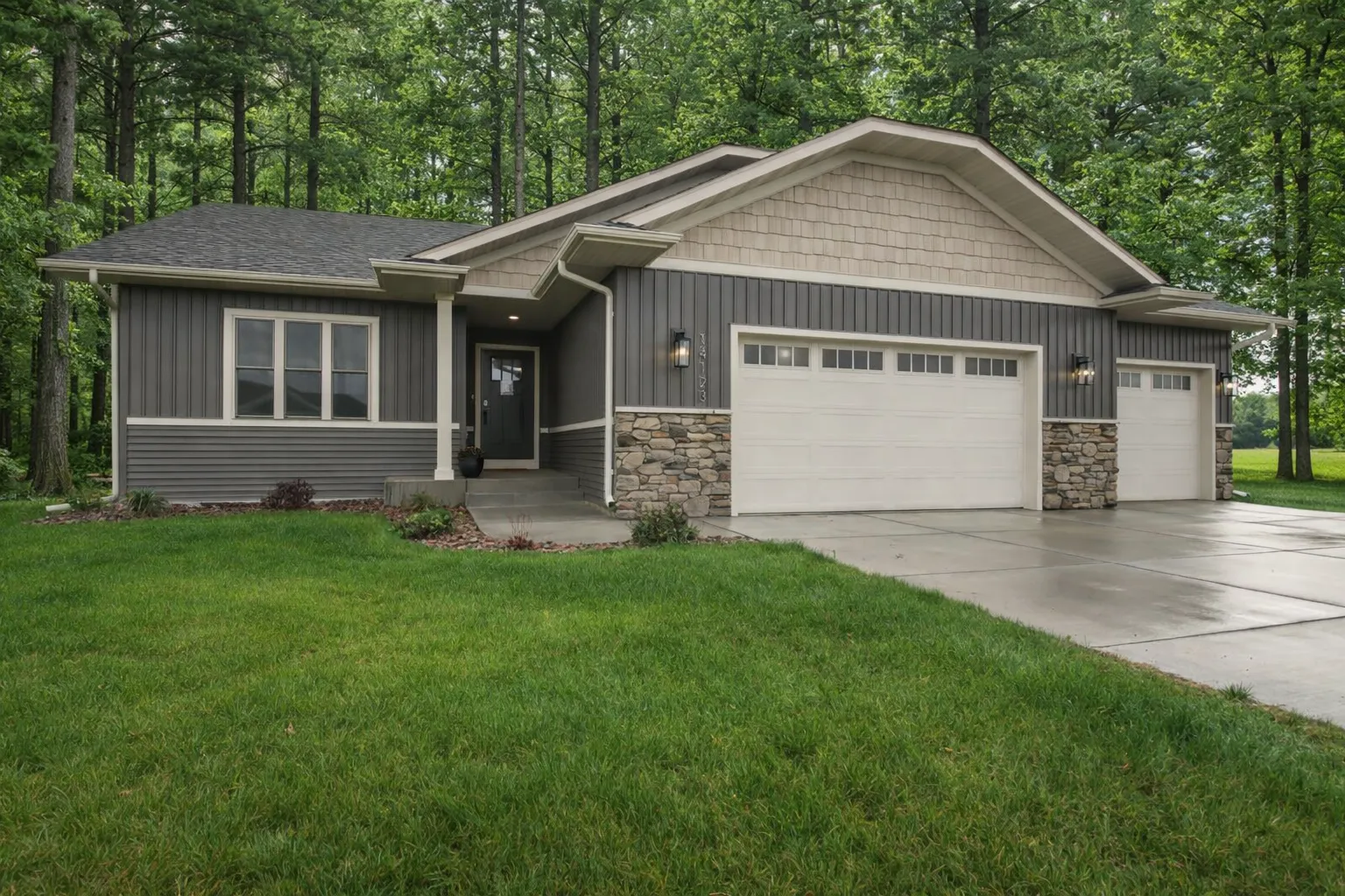 Situated on a private, wooded lot in the Autumn Woods community, this to be built open concept ranch offers peaceful surroundings with thoughtful design throughout. The owner’s suite serves as a private retreat, featuring a spacious walk in closet, double vanity, and a luxurious walk in tile shower. Bedrooms are intentionally placed on opposite ends of the home for enhanced privacy. At the heart of the home, the kitchen shines with sleek countertops, custom cabinetry with a wood hood, a tile backsplash, and under cabinet lighting, creating a warm, functional space for everyday living. The dining area opens to the backyard, while a practical mudroom off the garage includes a built in bench and coat area and connects directly to the laundry room for added convenience. A front entry staircase leads to the lower level, featuring a central living area with options to finish two additional bedrooms and a full bath, plus a large mechanical room offering extra storage. The exterior is complete with professional landscaping, river rock accents, shrubbery, a sprinkler system, and a hydro seeded lawn, all backed by a builder warranty for peace of mind. Customize this home to match your lifestyle and preferences and create a space that’s uniquely yours in Autumn Woods.