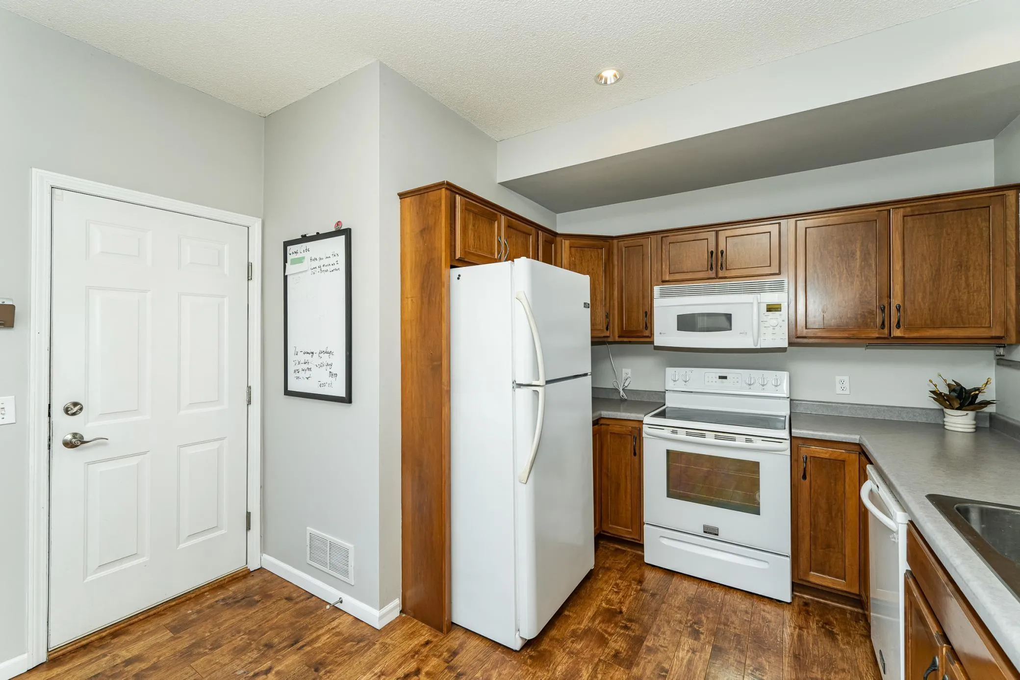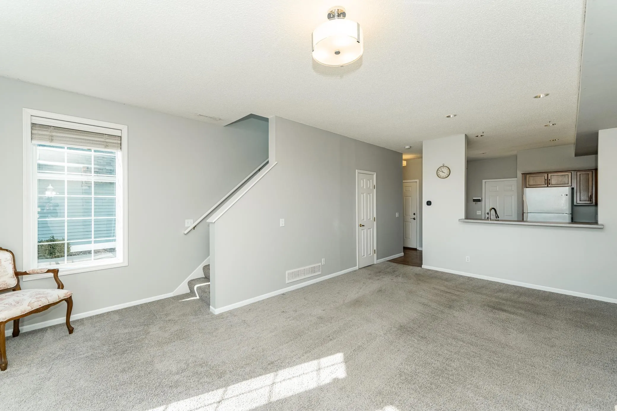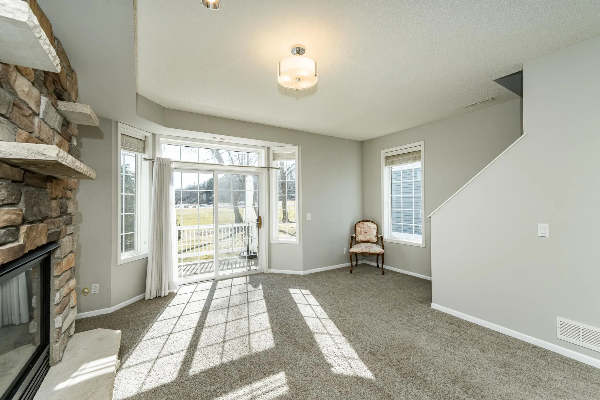 Beautiful, well-maintained 2-bedroom, 2-bath townhome in SW Rochester, ideally located just 5 minutes from downtown, Mayo Clinic, and shopping yet tucked near nature with walking trails right out your back door and backing to a large, picturesque city park. The home offers abundant recessed lighting and natural light throughout. Enjoy a wonderful open layout featuring a gorgeous stone mantel gas fireplace in the living room and soft neutral paint throughout. Sliding glass doors lead to a private patio perfect for a peaceful morning coffee with a scenic view. The upper level includes convenient second-floor laundry. The spacious primary suite features vaulted ceilings, dual closets, and a pass-through bathroom with double sinks and stylish tile flooring. The second bedroom is generously sized with a vaulted ceiling, a full wall of closets, and a charming sunburst window. Enjoy maintenance-free living with snow and lawn care included, plus convenient access to the bus line with a stop at Mayo Clinic. New roof in 2023. Move-in ready!