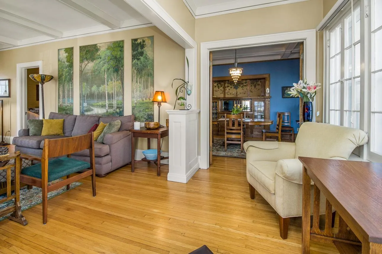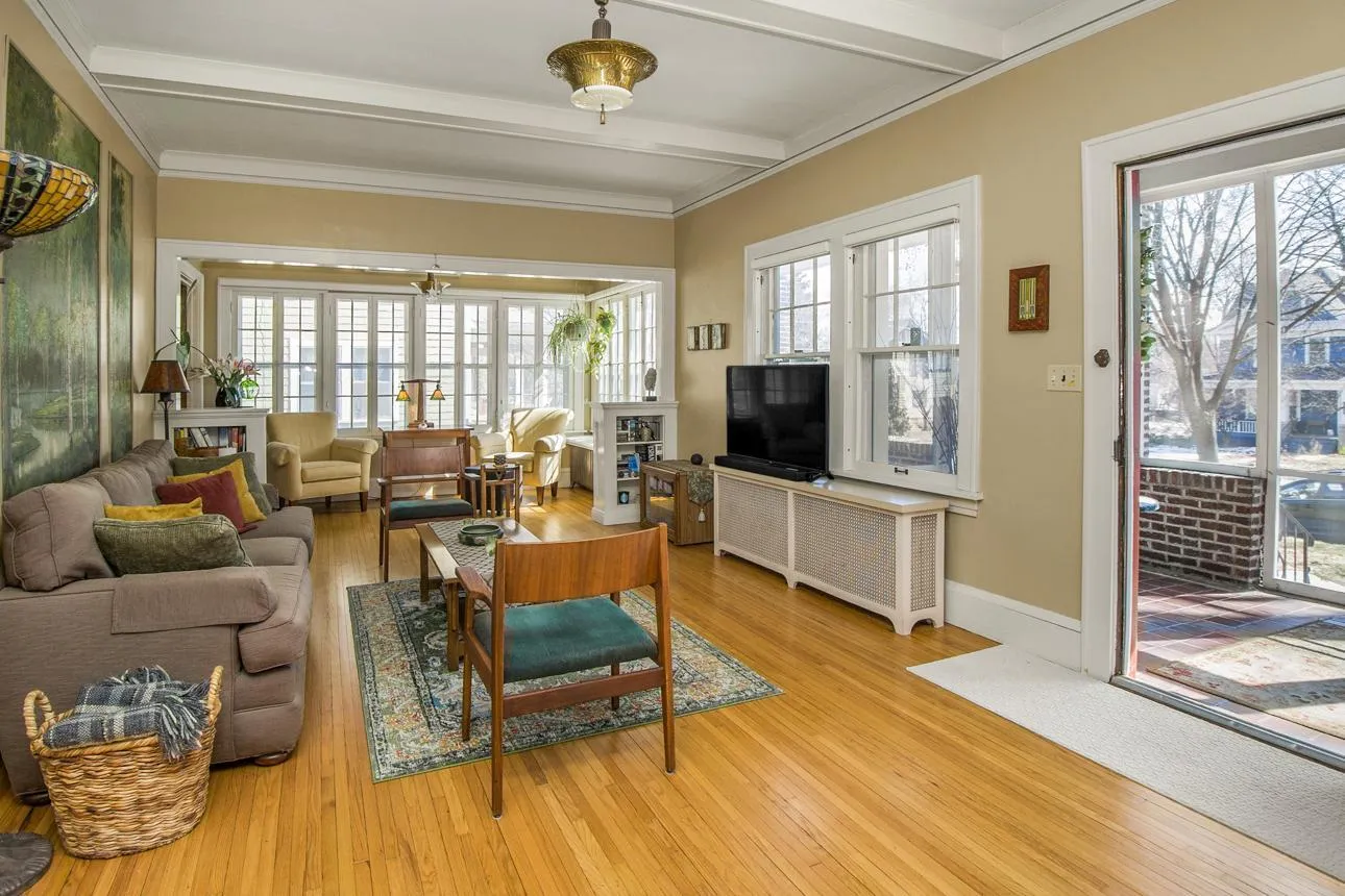 From the moment you arrive, the stunning two-tiered, southern-facing front porch welcomes you with quintessential Craftsman charm—the perfect spot to enjoy sunny mornings and relaxed evenings. Inside, the generous floor plan features expansive rooms highlighted by beautiful original woodwork and a cozy fireplace, creating an inviting atmosphere for both quiet nights in and effortless entertaining—all on one convenient level.