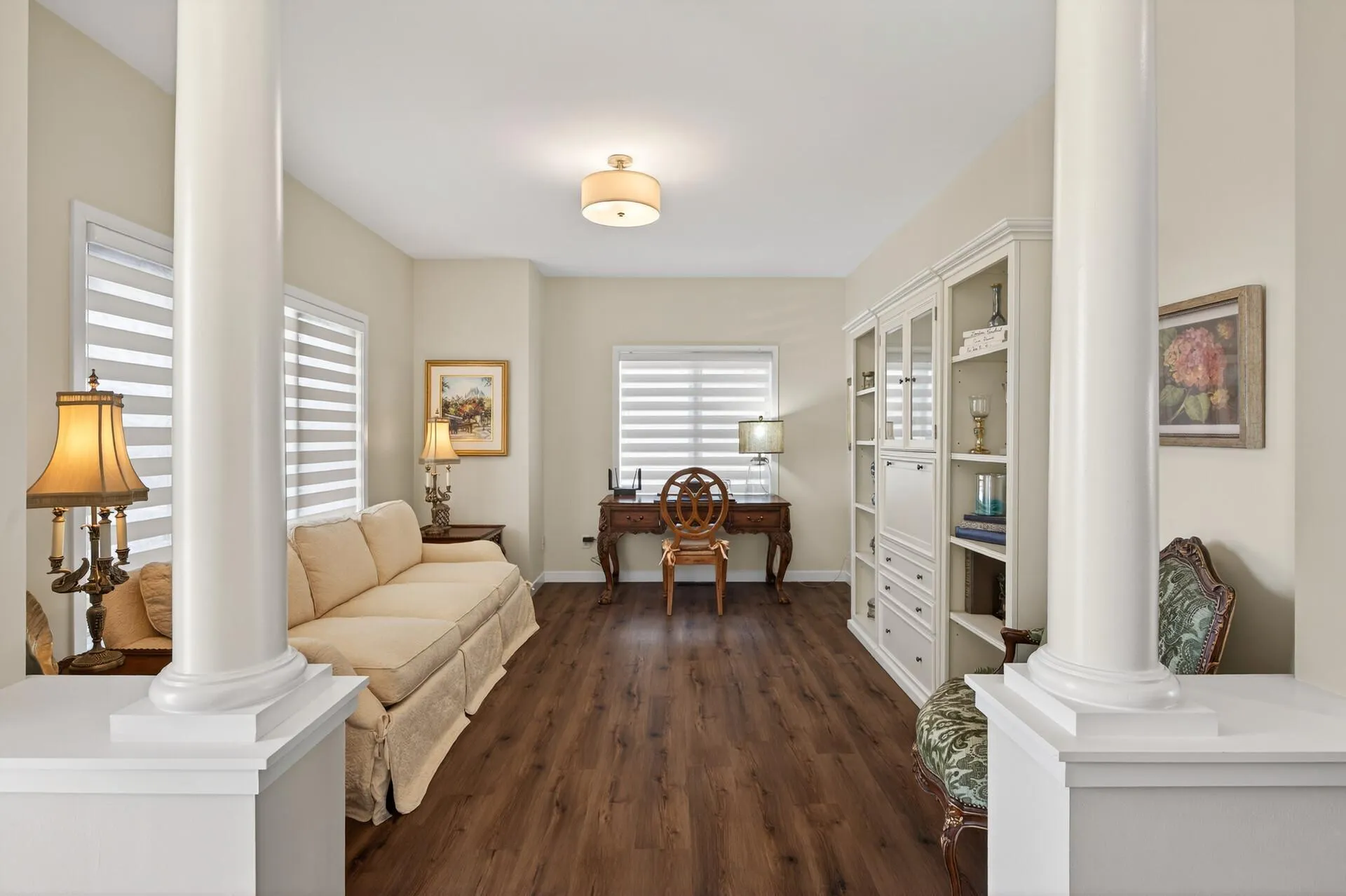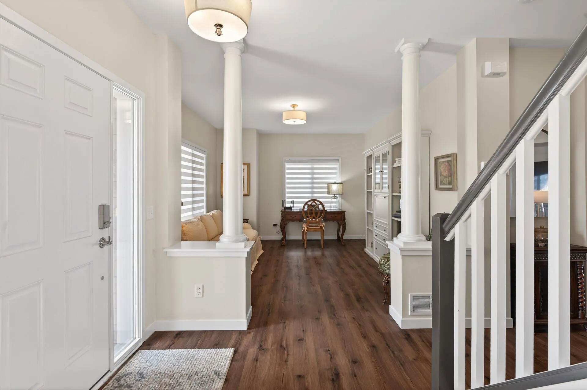 Gorgeous, remodeled Orono townhome with 3-car garage! Located just steps from scenic trails, shopping, and restaurants, and only minutes to downtown Wayzata and Lake Minnetonka, this association-maintained end-unit townhome offers exceptional style, space, and features you don’t typically find in a townhome. Tucked on a quiet dead-end street with mature trees and nearby guest parking, the setting provides both privacy and ease for everyday living. A welcoming front porch with no-maintenance decking sets the tone and creates the perfect spot for morning coffee or evening unwinding. Inside, the beautifully renovated interior features enameled trim, doors, and cabinetry, along with newer LVP flooring throughout the main level. The open floor plan is ideal for both entertaining and daily life, highlighted by a stacked stone gas fireplace in the living room and sliding doors that step out to a no-maintenance deck. A sun-filled main floor flex room offers versatility for a home office, reading nook, or play space. The stunning kitchen is everything you could want with abundant cabinetry, quartz countertops, a striking tile backsplash, stainless steel appliances, and a large center island with breakfast bar seating. Upstairs, you’ll find three bedrooms all on one level, including a spacious primary suite with vaulted ceilings, a huge walk-in closet with double-row shelving, and a beautifully remodeled ensuite bath complete with a tall double-sink vanity, separate soaking tub, and tiled shower. You’ll no longer have to go up and down stairs to do laundry with the convenient upper level laundry room. The lower level offers a dedicated media room with included TV and theatre chairs perfect for movie nights—along with a mudroom that provides direct access to the rare three-car garage. With its fantastic setting, high-end updates, flexible living spaces, and unbeatable Orono location, this townhome stands out in every way.