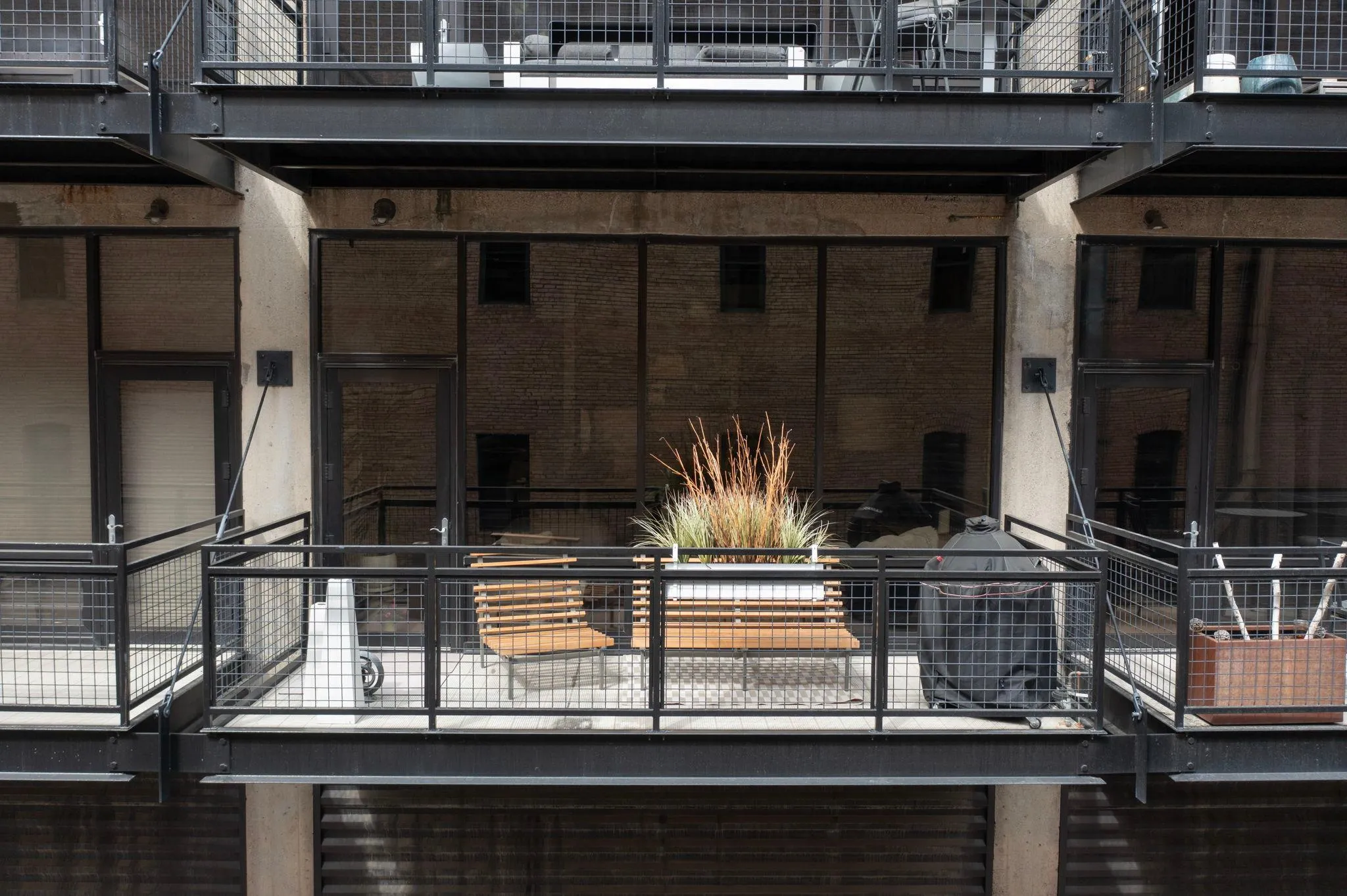 Set in Harvester Lofts in the vibrant North Loop, this stunning 1BR 1 bath condo features 11’ ceilings, maple hardwood floors, custom wood walls, and exposed concrete columns. The wonderful gallery wall services the entire condo and affords great opportunities for art and memorabilia. The kitchen/great room is upgraded with Carrara marble counters, backsplash & center island while open to the living area and private balcony beyond. The unit includes a den/office area, bedroom with walk-in closet, full bath, in-unit laundry, heated garage space #12 and private storage unit. Move-in ready.