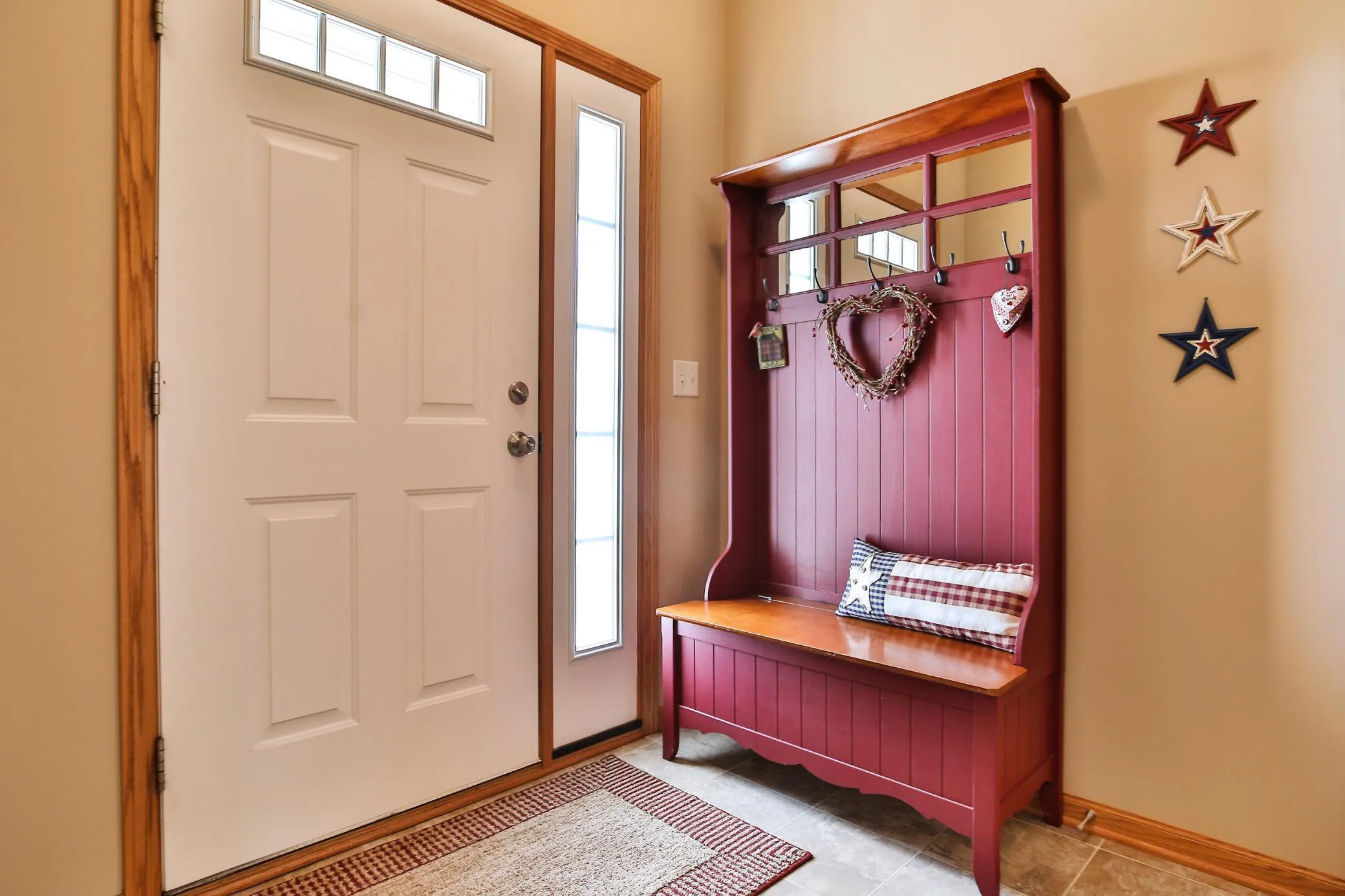 Additional interior highlights include: Front room designed for future French doors, Furnace used minimally each year, Pre-wired for security system, Timer for holiday lighting at the electrical panel, Dusk-to-dawn light sensors on the flagpole.