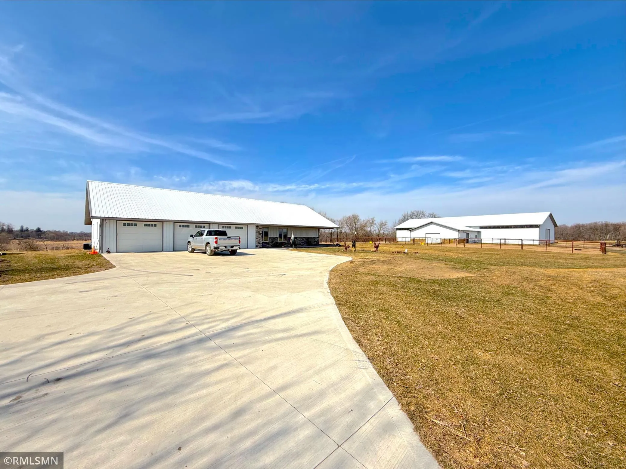 Built in 2020, this impressive shouse-style home offers 3 bedrooms, 3 bathrooms, and 2,050 finished square feet set on 64.77 scenic acres. In-floor hot water heat warms both the home and attached triple garage, delivering efficient year-round comfort. Spend your days relaxing in the sun porch that opens to a side patio with pergola, or gather in the inviting living room highlighted by an electric fireplace. The stunning kitchen is beautifully finished and accented by a striking red oak ceiling that continues throughout the home, creating warmth and character. Natural sunlight fills every space, and the home offers two well-appointed bedrooms (3rd bedroom being used as an office) and bathrooms designed with comfort in mind. The attached triple garage also includes a convenient half bath. The centerpiece of the property is the extraordinary 60×120 pole shed featuring an indoor riding arena, office space, half bathroom, and direct access to three paddocks. This exceptional setup makes the property a true horse lover’s retreat with space, functionality, and privacy in every direction. Will stay with the property: The custom made living room table (with matching leathered granite countertop) along with 4 chairs. Reel hose mounted in garage. Tan shed in yard by garage.