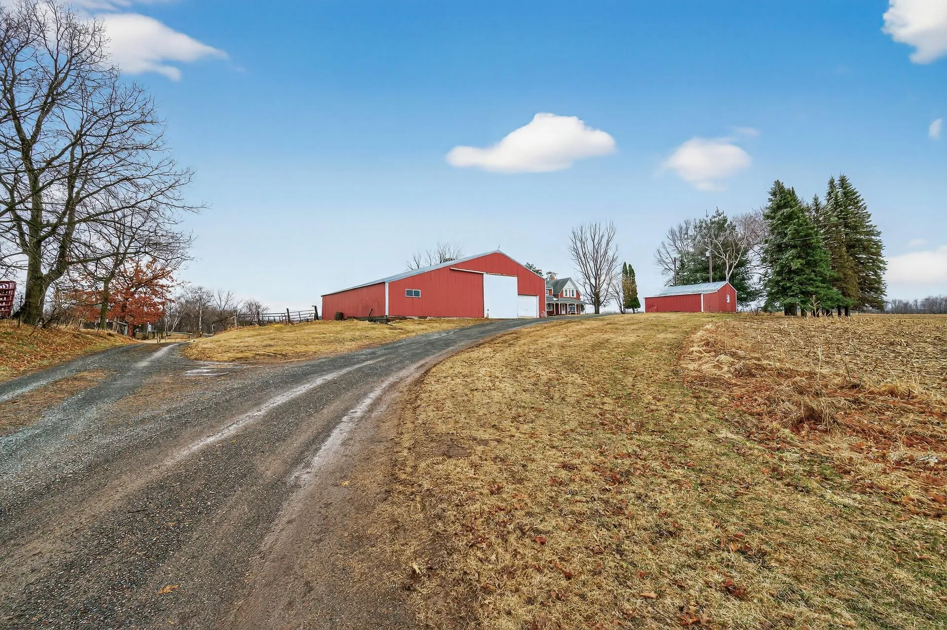 This setting is so charming you wont want to leave! House situated on a super yard with outbuildings surrounded by fields for crops or pasture. Easy access location yet far enough out for precious privacy we all seek. Make your appointment today!