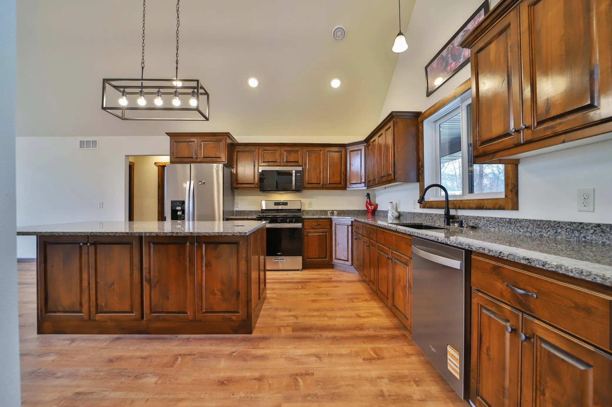 Experience effortless lakeside living with this newly built, one-level home on White Sand Lake, ideally located near all the conveniences, dining, and medical facilities of the Brainerd Lakes Area. Inside experience an inviting open-concept layout highlighted by vaulted ceilings, a gas fireplace and abundant natural light from the lake facing windows. The home offers three bedrooms and three bathrooms. The primary suite features a beautifully finished, accessible en-suite bathroom with a tiled shower, a spacious walk-in closet, and a sliding door that opens directly to the lakeside patio. The chef’s kitchen features stainless steel appliances, a center island, and a spacious walk-in pantry. Outside, the property boasts both level elevation to the lake and over 100 feet of pristine, sugar sand shoreline, a hard-to-find combination. The large yard is the perfect space for games, activities and relaxation. Enjoy in-floor heating in the home and garage. The oversized, heated and insulated three stall-garage is perfect for vehicles, storage, and a comfortable place for your hobbies. A perfect blend of modern convenience and lakeside elegance that you won’t want to miss.