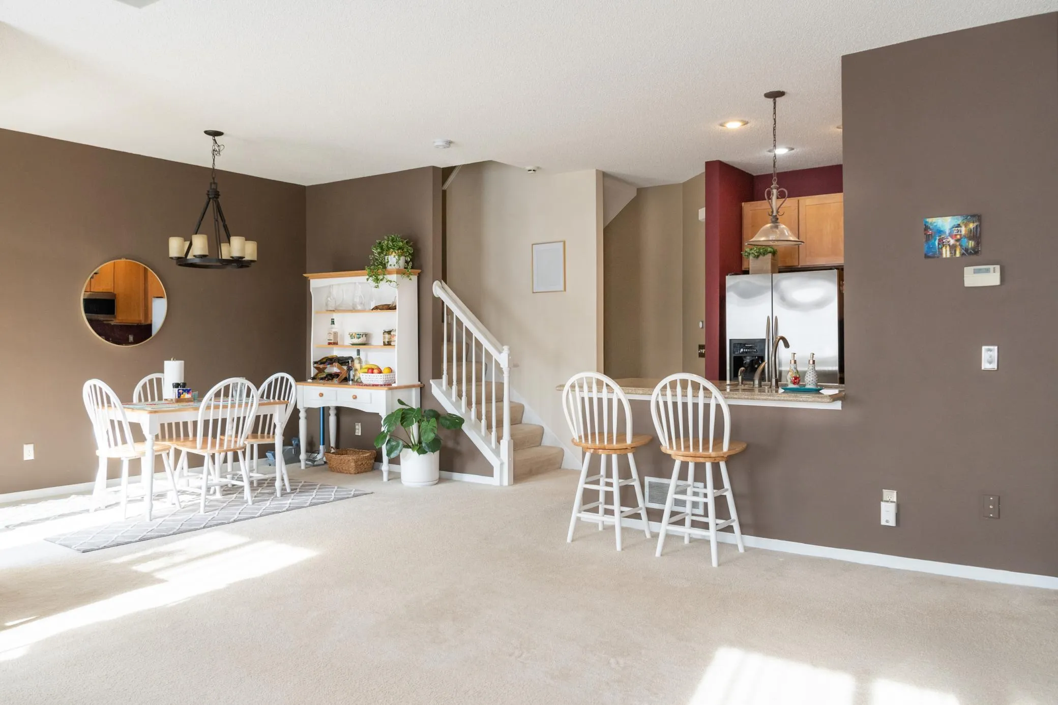 Step into this beautifully maintained, south-facing 2-bed/2-bath townhome in sought after Woodbury location. Bathed in natural light, this home offers a warm and inviting atmosphere with thoughtful upgrades throughout. Enjoy a stylish kitchen featuring stainless steel appliances, a cozy breakfast nook, and a separate dining area—perfect for both everyday living and entertaining. The spacious living room boasts a gas fireplace, creating the perfect place to relax, while the private balcony adds a charming outdoor retreat. Upstairs, you’ll find generously sized bedrooms, including a primary suite with a convenient walkthrough bath. With ample storage, smart layout, and modern comforts, this home truly has it all. Located just minutes from parks, trails, shopping, dining, and with easy freeway access, this property combines comfort, convenience, and lifestyle, making it a must-see!