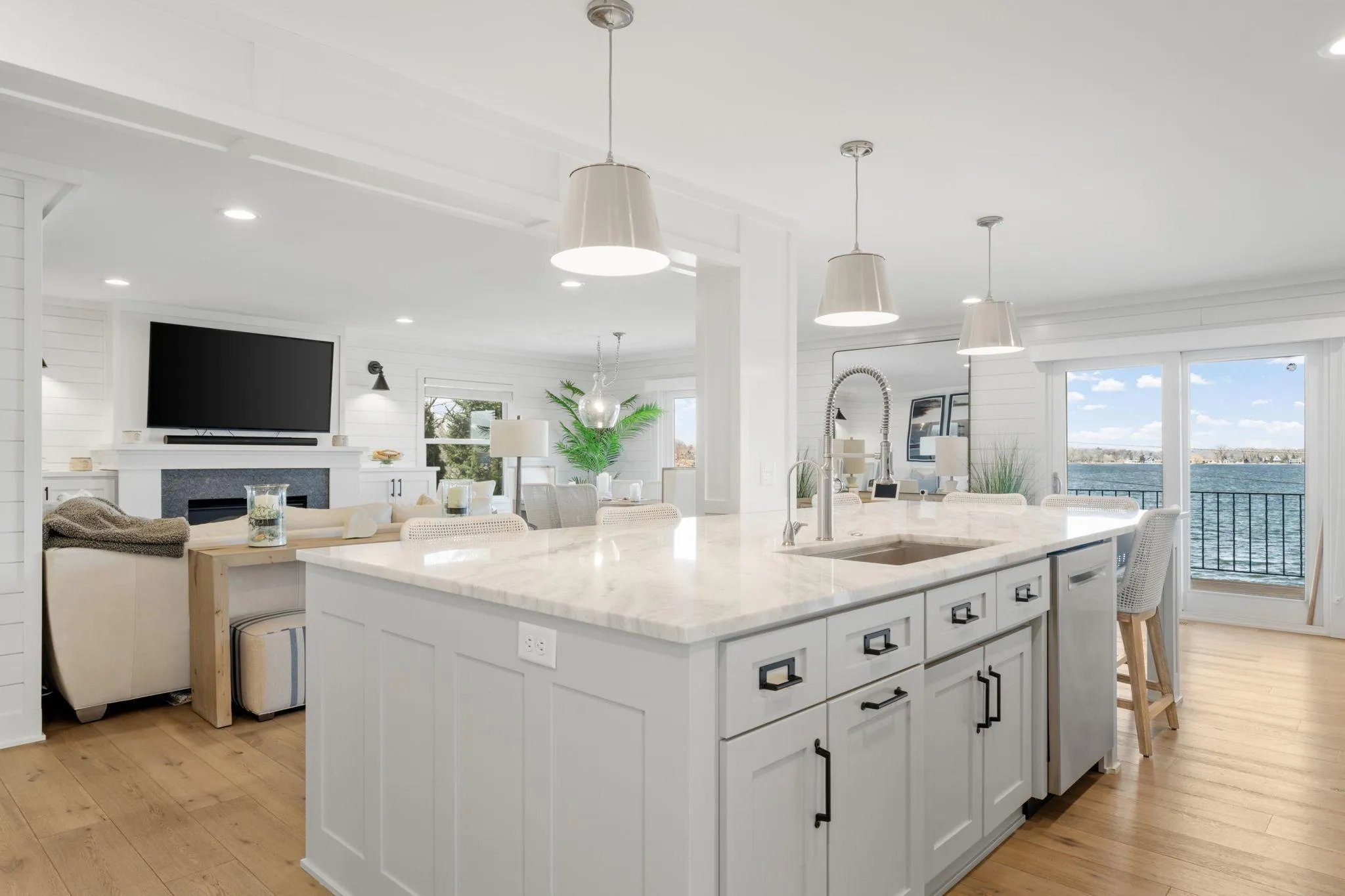 Positioned on sought after A-Grade Crystal Bay of Lake Minnetonka, this home is a lakefront retreat with 50 feet of lakeshore and offered completely turnkey and fully furnished with high-end furnishings and decor in almost brand new condition. Crystal Bay is widely regarded as one of the lake’s finest known for its depth, water clarity, and long open water views that makes lakefront living exceptional. Perfect for entertaining, the main level unfolds in an open concept design where the kitchen, dining, and living areas blend seamlessly. This bright and airy space transitions outdoors through two oversized sliding glass doors, revealing an expansive deck with sweeping views of Crystal Bay. The kitchen is equipped with luxurious marble countertops, a large center island, and professional grade stainless steel appliances, including both a beverage/wine fridge, and custom white cabinetry. Shiplap walls, wide plank floors, and a gas fireplace with custom built-ins create a warm and stylish atmosphere. Two bedrooms and a full bathroom conveniently complete this floor. Upstairs, two bedrooms share a full bathroom. The primary bedroom features walk-in closets, and a private deck overlooking the water. The lower level offers a 2 car garage, mudroom, utility room, and generous storage. Thoughtfully updated with high end finishes throughout, this home presents in exceptional condition. Other updates include newer furnace, AC, water heater, remodeled bathrooms, sealed decking, irrigation, and professional landscaping. The garage was just completely redone and finished with insulated garage doors, sheetrock, dedicated workshop space, paint, new lighting, and epoxy floors. Direct access to the Dakota Rail Regional Trail from the backyard. Minutes to Wayzata, waterfront dining, and more! This is Lake Minnetonka living at its finest.