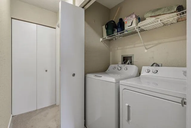 Demand 3rd floor location w/ well-designed 2BR floor plan featuring open flow from the moment you enter. Informal dining view goes onward to LR and Balcony/Deck. Open KT features function, generous cabinetry & breakfast bar. Light-filled LR overlooks pool with trees beyond. Move-in ready. In-unit full-sized Washer & Dryer conveniently located. Community room, Outdoor Pool, Fitness Area.