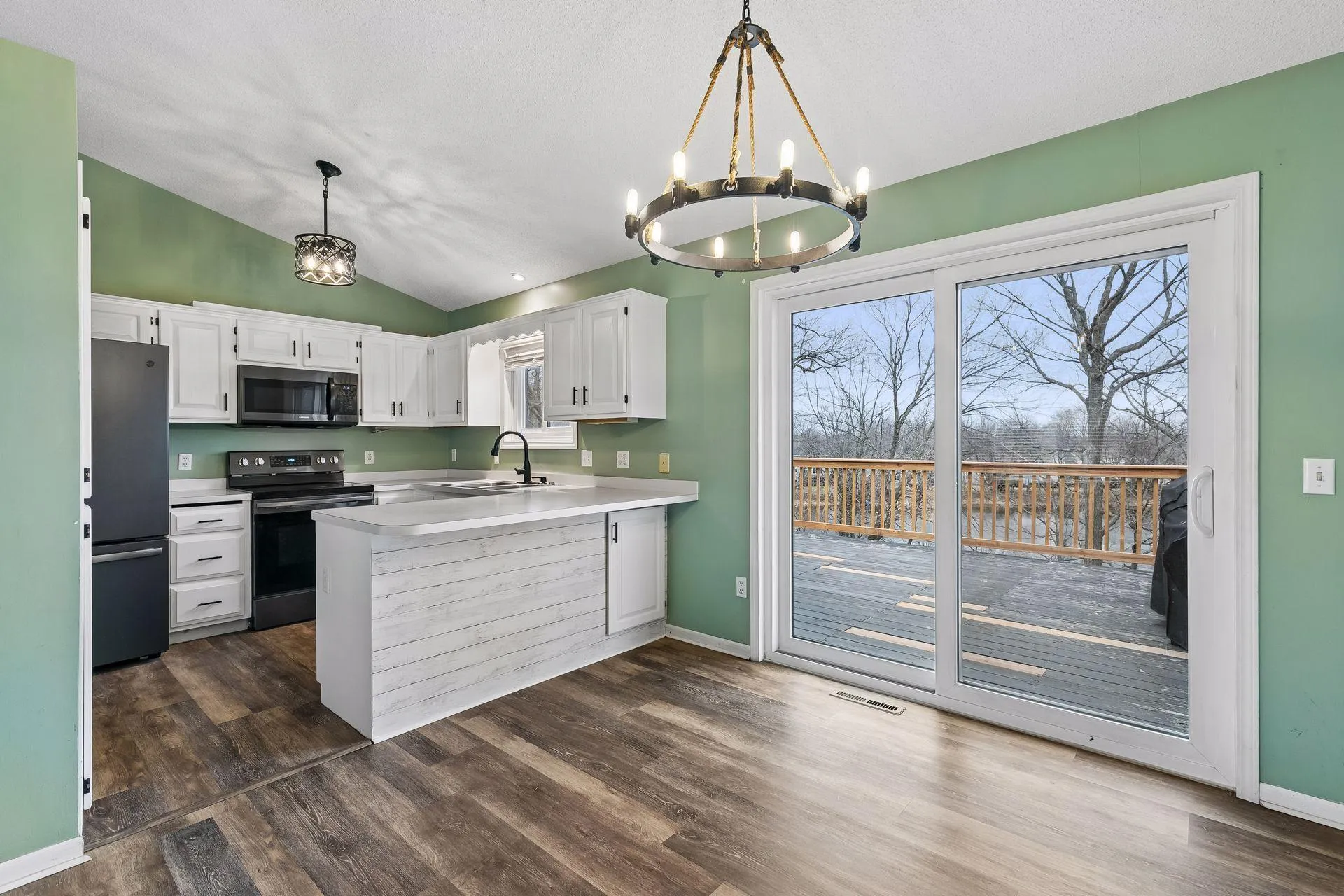 This bright and airy sanctuary welcomes you with soaring vaulted ceilings and a sophisticated neutral palette, creating an inviting atmosphere that feels both modern and timeless. The functional layout features three bedrooms on the upper level, while the entire interior has been meticulously refreshed with new flooring, white paneled interior doors, and stylish black hardware. You’ll enjoy ultimate peace of mind and energy efficiency thanks to an extensive list of recent high-end upgrades, including all-new windows and sliding glass doors, a new furnace, A/C, water heater, and water softener. The heart of the home shines with a fully equipped kitchen featuring new stainless steel appliances, white cabinetry, and updated stylish lighting which leads to a private deck overlooking a stunning pond view. This interior elegance flows seamlessly into a spacious family room with a cozy gas fireplace in the walk-out lower level. Perfectly positioned near nature trails and downtown, this home offers the rare opportunity to own a private retreat where mechanical and cosmetic details have already been updated for you.