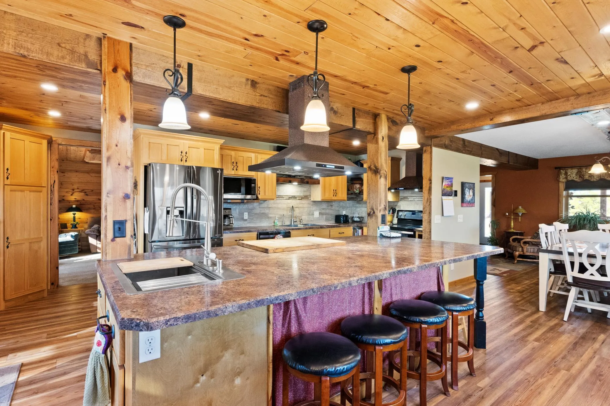 Set on nearly 5 private acres with a peaceful creek winding through the property, this beautifully updated two-story home offers the perfect blend of space, functionality, and a setting that’s hard to beat just minutes from Alexandria. Featuring 5 bedrooms and 4 bathrooms, the home has been meticulously cared for and thoughtfully upgraded throughout. The gourmet kitchen is a true standout with high-end finishes, a built-in commercial griddle, and a convenient prep sink in the island, making it ideal for everything from everyday living to entertaining guests with ease. Recent improvements including newer windows, LP Smart siding, doors, and HVAC provide peace of mind for years to come. Step outside to a large concrete deck with a pergola overlooking the serene creek, creating the perfect spot to unwind or host gatherings. Below, a screened-in porch offers a cozy, bug-free retreat, while multiple patio areas—including one with its own outdoor counter and sink—make it easy to clean fresh garden produce or fish after a day outdoors. A covered front porch adds even more space to relax and take in the picturesque surroundings. The walkout lower level offers excellent potential for a mother-in-law suite with a full kitchen and private access, providing flexibility for multi-generational living or guests. A heated 30 x 72 shop with in-floor heat and an attached 10 x 50 lean-to is a rare and valuable addition, perfect for hobbies, and storage. The property also features a heated 3-car garage with floor drains, a 14 x 16 chicken coop with electric and fenced enclosure, and beautifully maintained flower areas along with numerous fruit trees that enhance both the charm and usability of the land. This is a rare opportunity close to Alexandria to own a turn-key acreage property that combines modern updates, versatile living spaces, and peaceful country living all in one incredible setting.